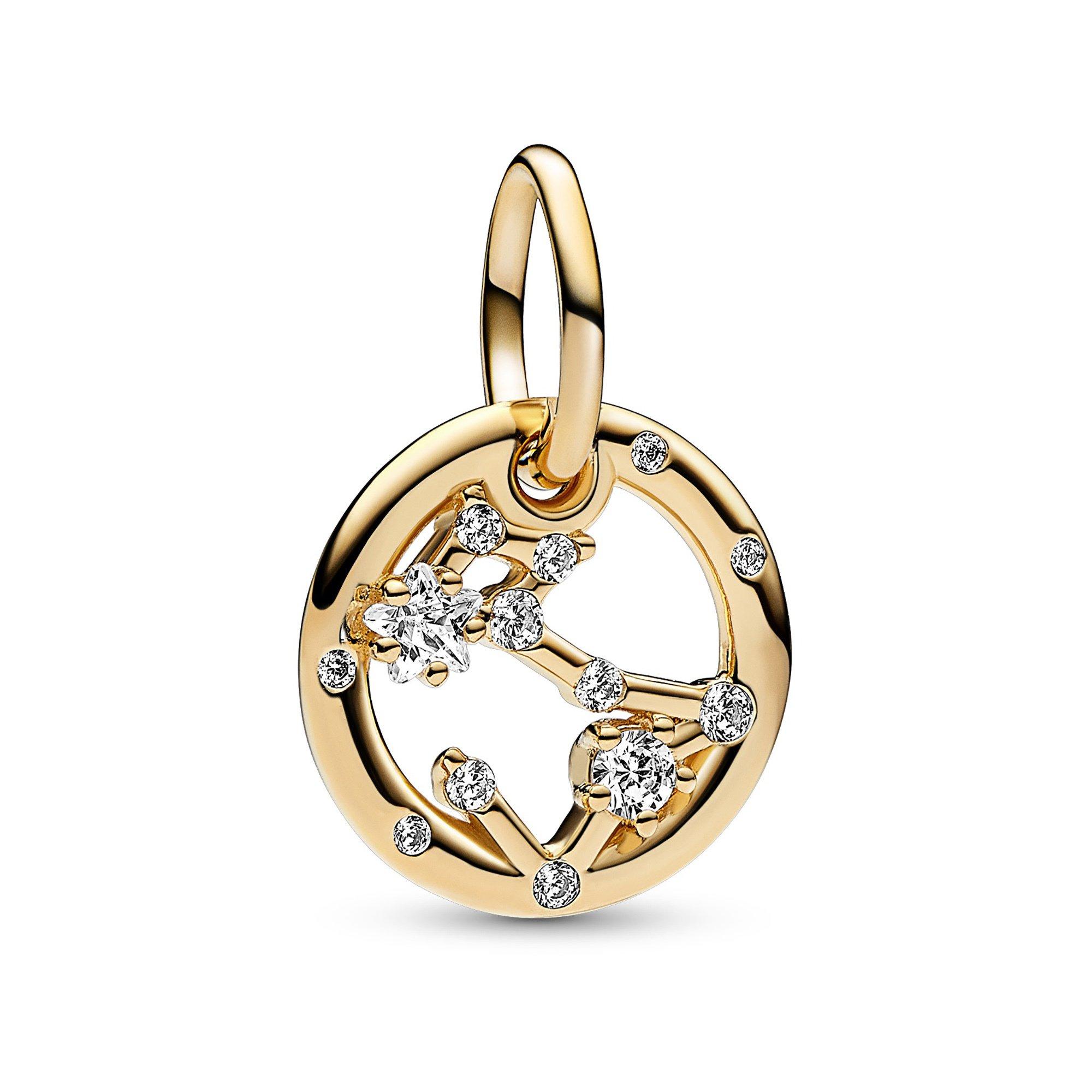 Lass deinen Look von den Sternen leiten mit dem Sternzeichen Fische Charm-Anhänger. Dieser Pandora Moments Charm-Anhänger ist in unserer vergoldeten Metalllegierung gefertigt, hat einen kreisförmigen Aussenrahmen und klare, glitzernde Cubic Zirkonia sowie die Form des Sternzeichens Fische. Auf der Rückseite des Rahmens ist „Pisces“ eingraviert. Die Fische in deinem Leben sind einfühlsam, sensibel und bodenständig und du kannst immer darauf zählen, dass die Fische in deinem Leben deine Gedanken lesen können, ohne dass du ein Wort sagen musst. Trage ihn als Zeichen der Stärke deines eigenen Sternzeichens oder schenke ihn den Fischen in deinem Leben als Zeichen der Wertschätzung.