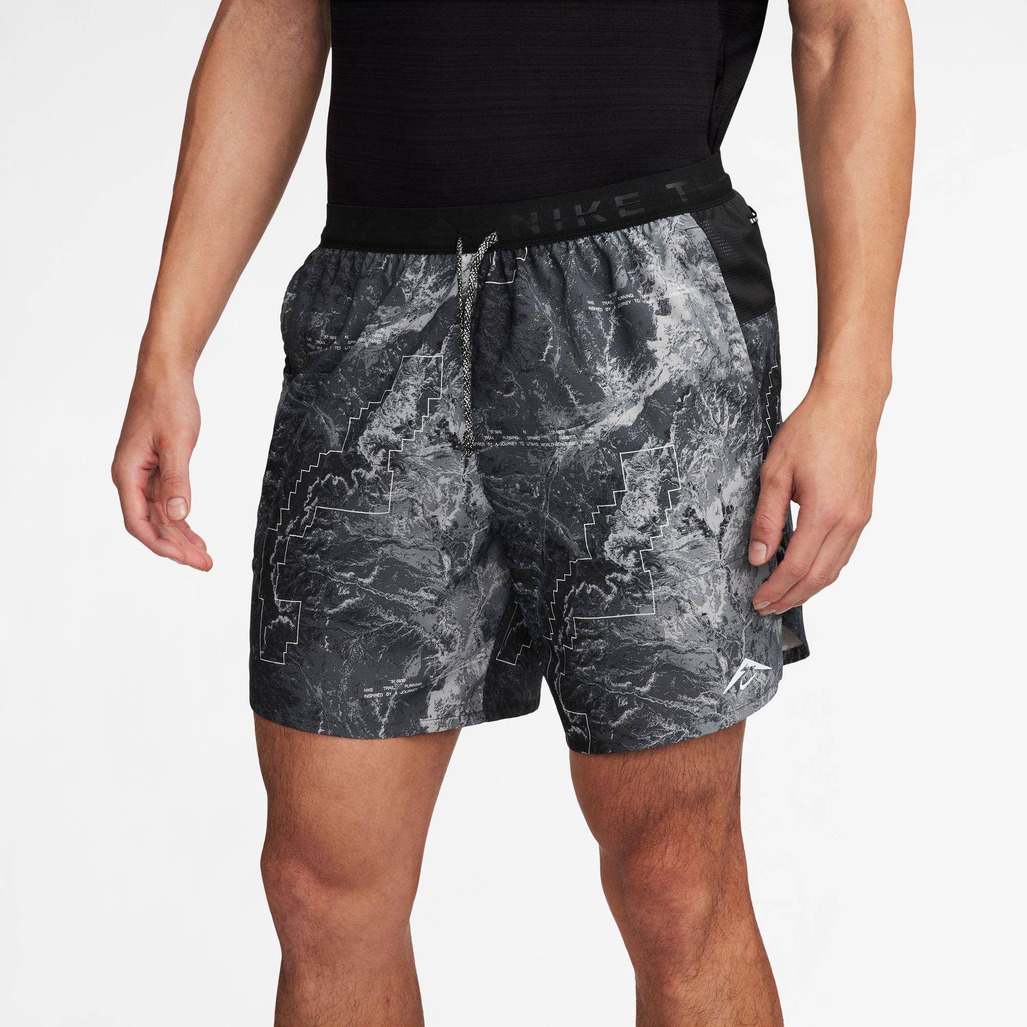 Nike Trail Stride Men's Dri-FIT 7'' Brief-Lined Running Shorts Mit unseren Stride Laufshorts bist du abseits der Strasse, auf den Hügeln und überall sonst bestens ausgestattet. Mit einer relaxten Passform und geschmeidigem, schweissableitendem Material fühlst du dich auf dem Trail sicher und kühl. Der Innenslip sorgt für rutschfesten Halt. Der Wüsten-Satellitenbild-Print feiert die wunderschönen Landschaften der Welt und zeigt, dass der Planet für Trailläufer wie dich ein endloser Spielplatz ist. Schnell trocknendes Design mit gutem Halt Die Nike Dri-FIT-Technologie leitet Schweiss von der Haut ab, wodurch er schneller verdunstet, und ermöglicht so trockenen Tragekomfort. Ein Schritt nach vorn Die Stride Shorts wurden für Bewegungsfreiheit entwickelt. Wir haben sie mit einem flacheren Bund und minimalem Stretch gefertigt, damit du schnell und frei laufen kannst. Sichere Aufbewahrung Die Seitentaschen eignen sich zur Aufbewahrung deiner Sachen wie Schlüssel oder Karten. Die hintere Reissverschlusstasche bietet ausreichend Platz für ein Smartphone. Sie hat eine interne Beschichtung gegen Feuchtigkeit, um deine Ausrüstung trocken zu halten. Das geschmeidige Webmaterial ist leicht und strapazierfähig. Ein elastischer Bund und ein Kordelzug sorgen für eine Passform, die sich genau richtig anfühlt.
