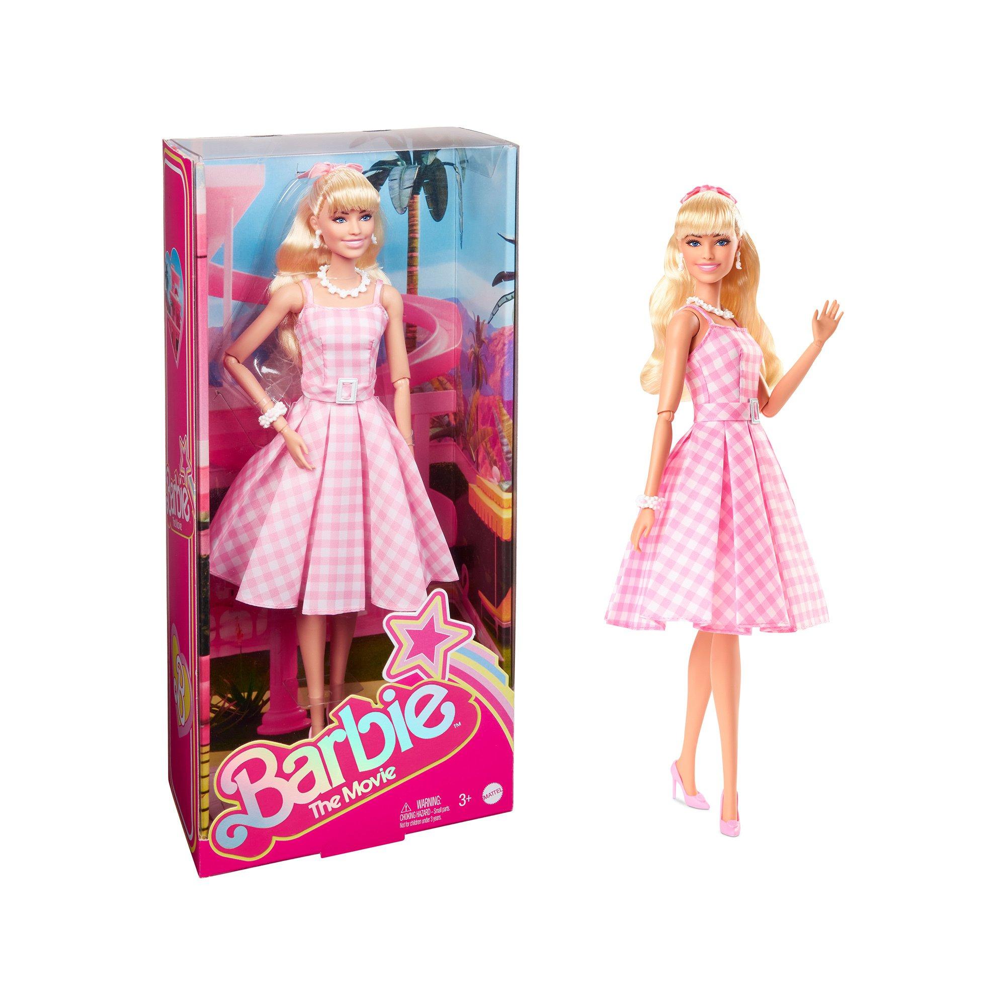 Viele Grüsse aus der Welt von Barbie! Diese Barbie-Puppe sieht in ihrem süssen Kleid absolut zeitlos aus. Der Look ist inspiriert von einem der bekanntesten Outfits von Barbie im gleichnamigen Spielfilm. Mit ihrem rosafarbenen, mit Vichy-Karos gemusterten Kleid, der Gänseblümchenkette und den pastellfarbenen High Heels fängt der Tag gut an in der Welt von Barbie. Diese Puppe ist Margot Robbie in der Rolle der Barbie nachempfunden und ein grossartiges Geschenk für Fans und Sammler. Die Puppe kann nicht von allein stehen. Abweichungen in Farbe und Gestaltung vorbehalten.
