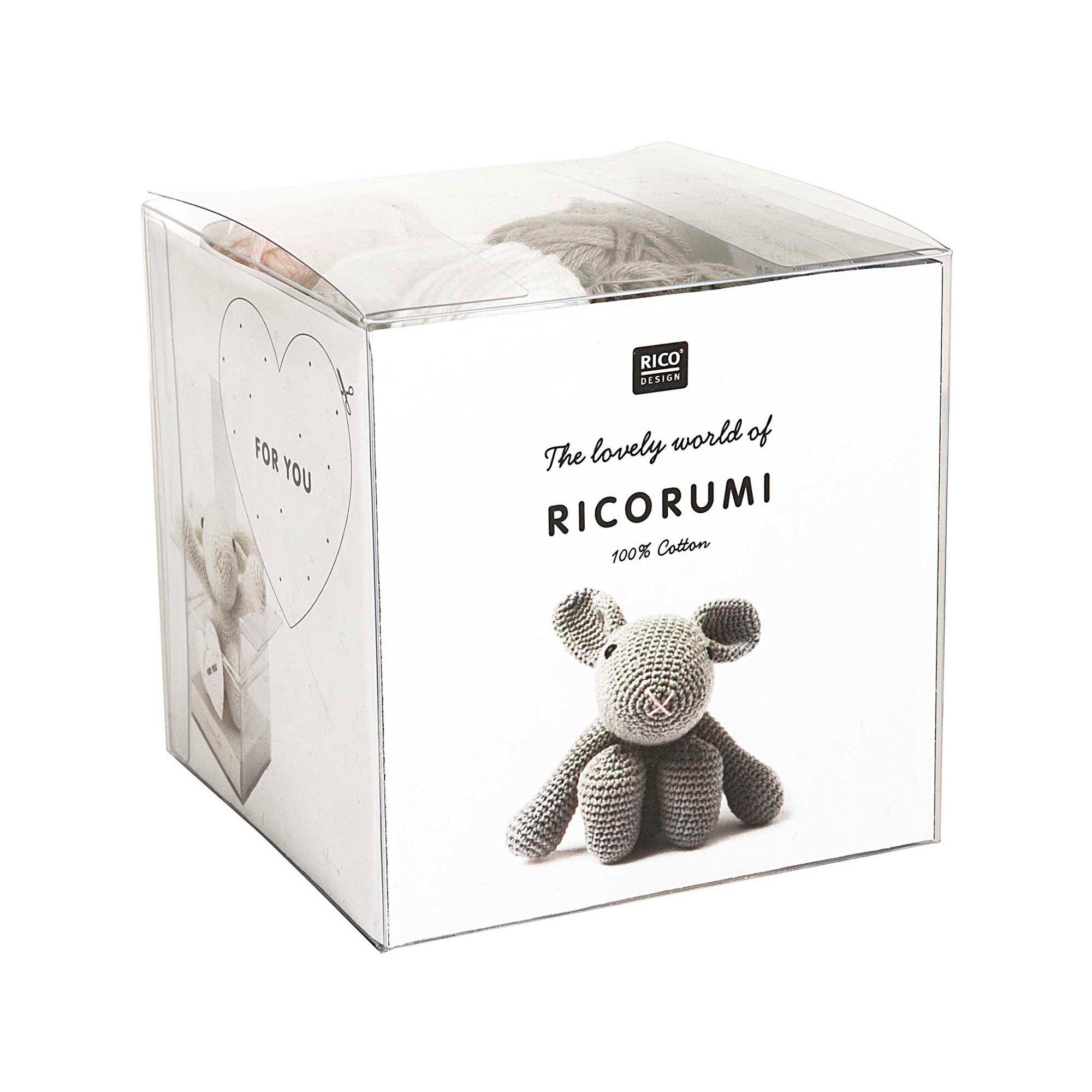 Das Häkelset enthält alles, was Sie für das Häkeln des süssen Baby-Spielzeuges benötigen. Neben der ausführlichen und detailreichen Anleitung sind sinnvolle Näh- und Häkelnadeln als auch die benötigte Füllwatte für den Kopf enthalten. Die benötigte Wolle setzt sich aus insgesamt drei Knäuel des beliebten Ricorumi dk Garns, sowie einem Knäuel des Ricorumi Spin Spin dk Garns zusammen und besteht aus 100% Baumwolle. So kann der Häkelspass sofort beginnen.