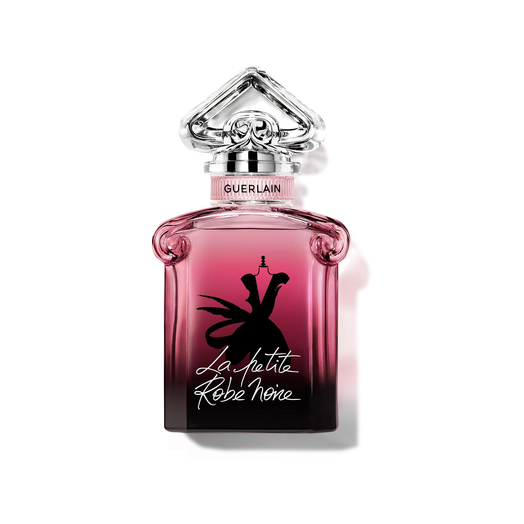 Der 1912 geschaffene Flakon mit dem umgedrehten Herzen hat mehr als hundert Jahre Geschichte und ist zu einer wahren Ikone geworden. Bei La Petite Robe Noire Eau de Parfum Absolue schmücken sich seine zeitlosen Linien mit einem Farbverlauf von Schwarz bis zu intensivem Rosa, was auf die Duftnoten des Parfums anspielt.