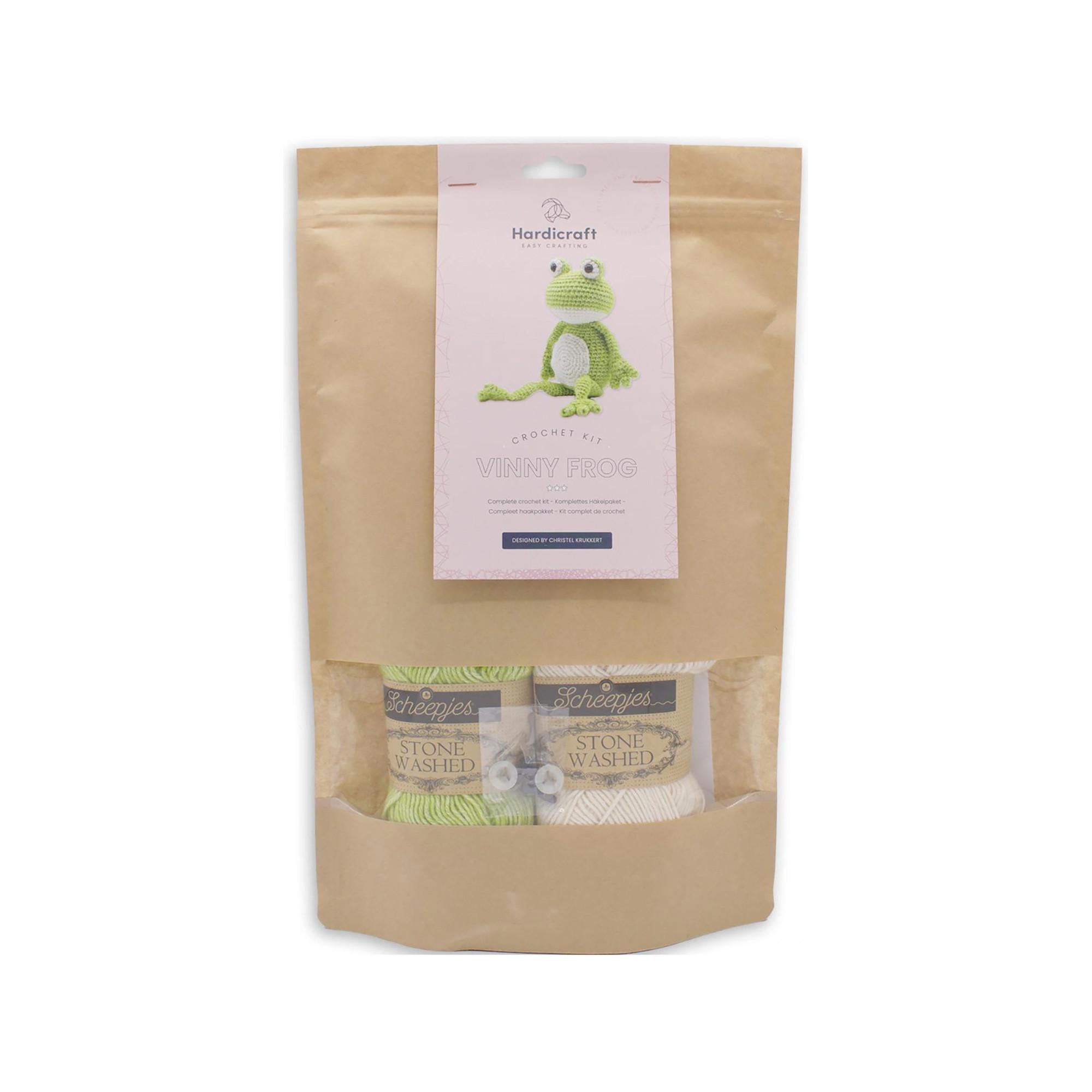 Springe mit Vinny in dein nächstes Projekt! Dieses Paket enthält hochwertiges meliertes Garn und alle Kurzwaren, ausser der Häkelnadel, welche du brauchst. Vinny ist etwa 30 cm gross und wird mit einer 3,0 mm Häkelnadel gehäkelt.