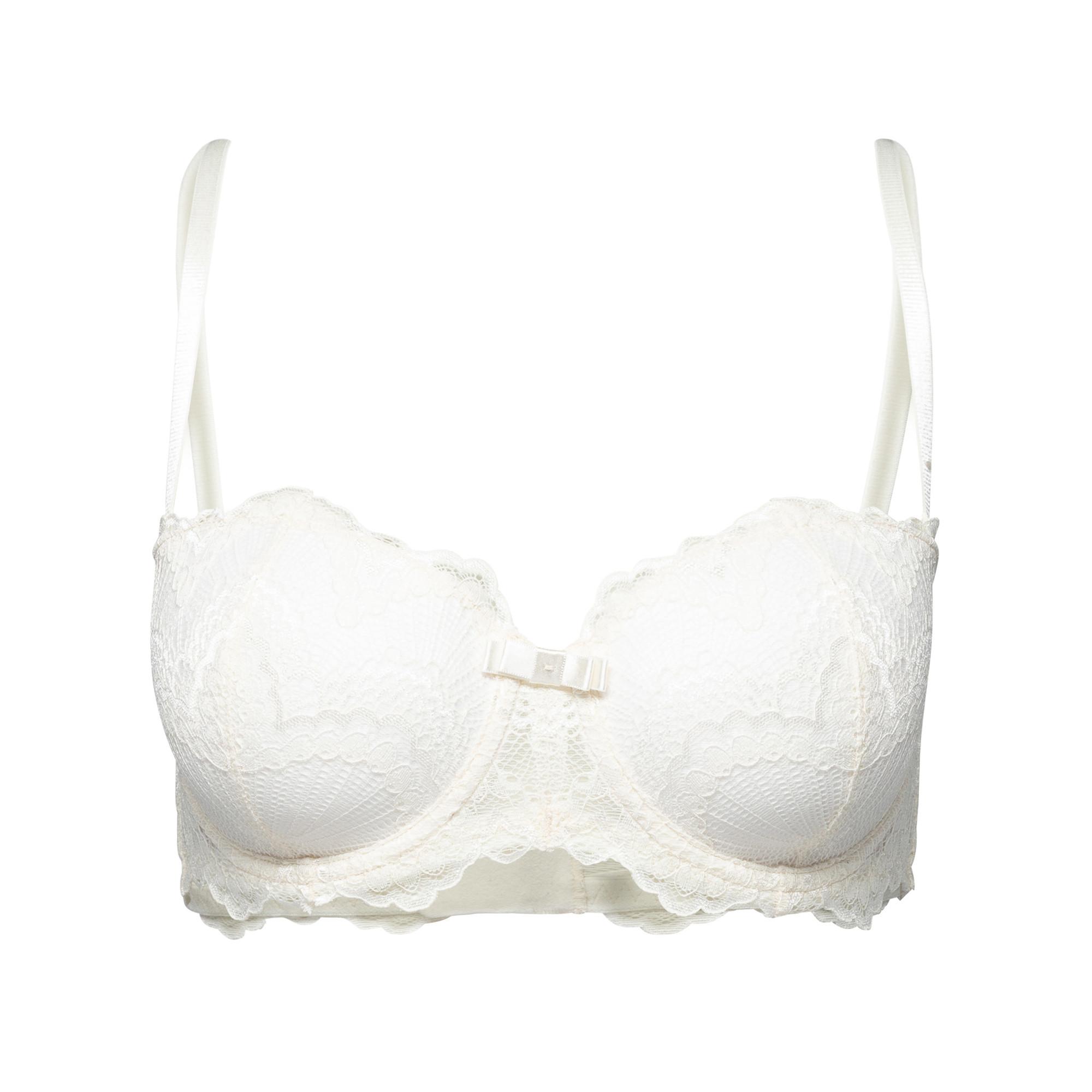 Dieser elegante Bandeau-BH verfügt über zarte Spitzendetails, die einen raffinierten und femininen Look bieten. Das Design umfasst verstellbare und abnehmbare Träger für eine personalisierte Passform und einen sicheren Hakenverschluss am Rücken.