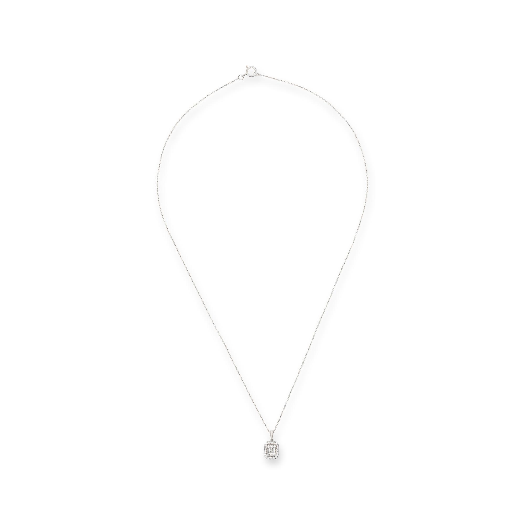 Dieses Collier von Sergio Ferris aus 18 Karat Weissgold und Brillanten besteht aus einer zarten Halskette mit nostalgischem Anhänger. Das klassische Design wirkt charakteristisch und doch erfrischend neu. Die Kette hat einen Federringverschluss.