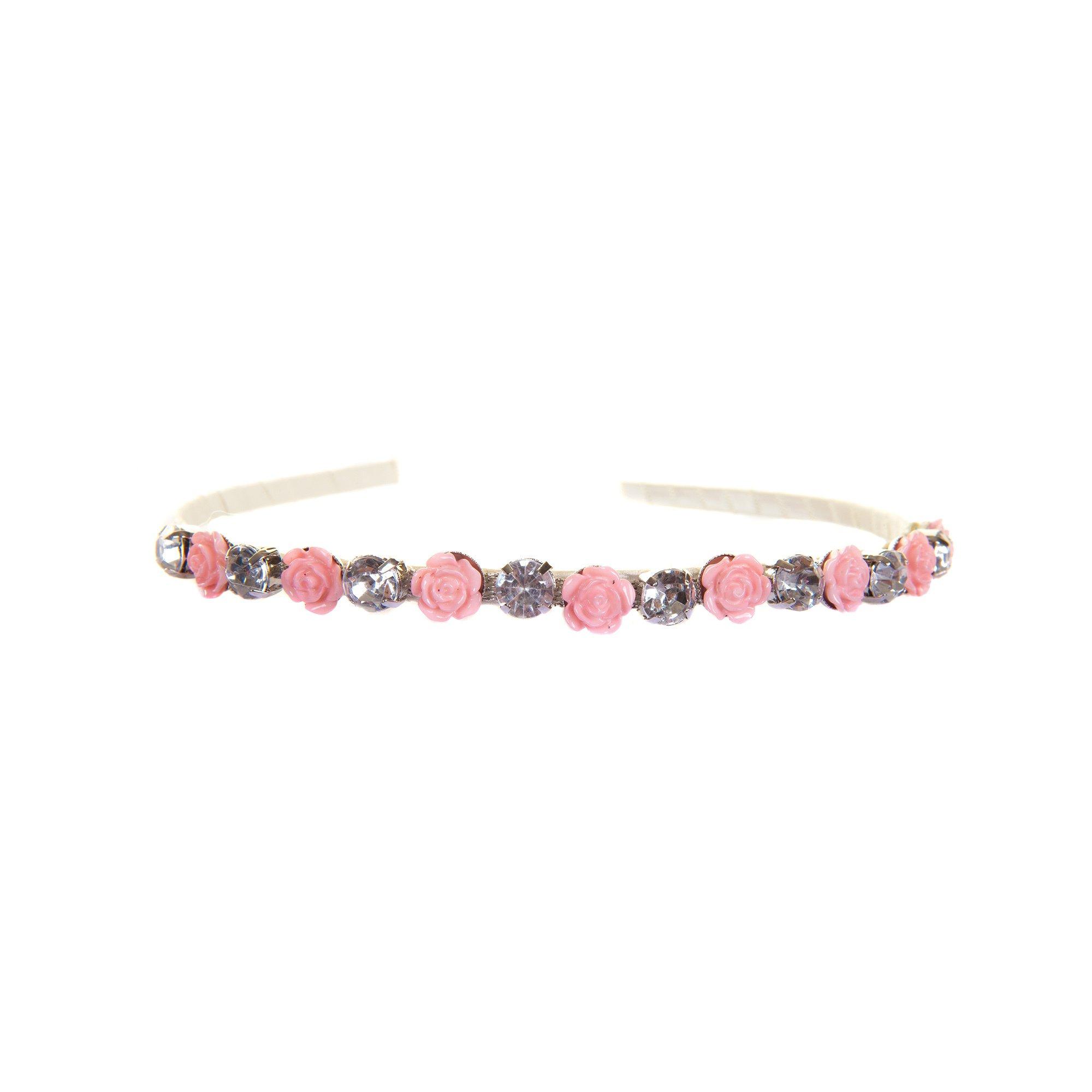 Diamanten und Rosen schmücken dieses klassische Stirnband. Jede Rose und jeder Strassstein ist zart an diesem Stirnband mit Band befestig.