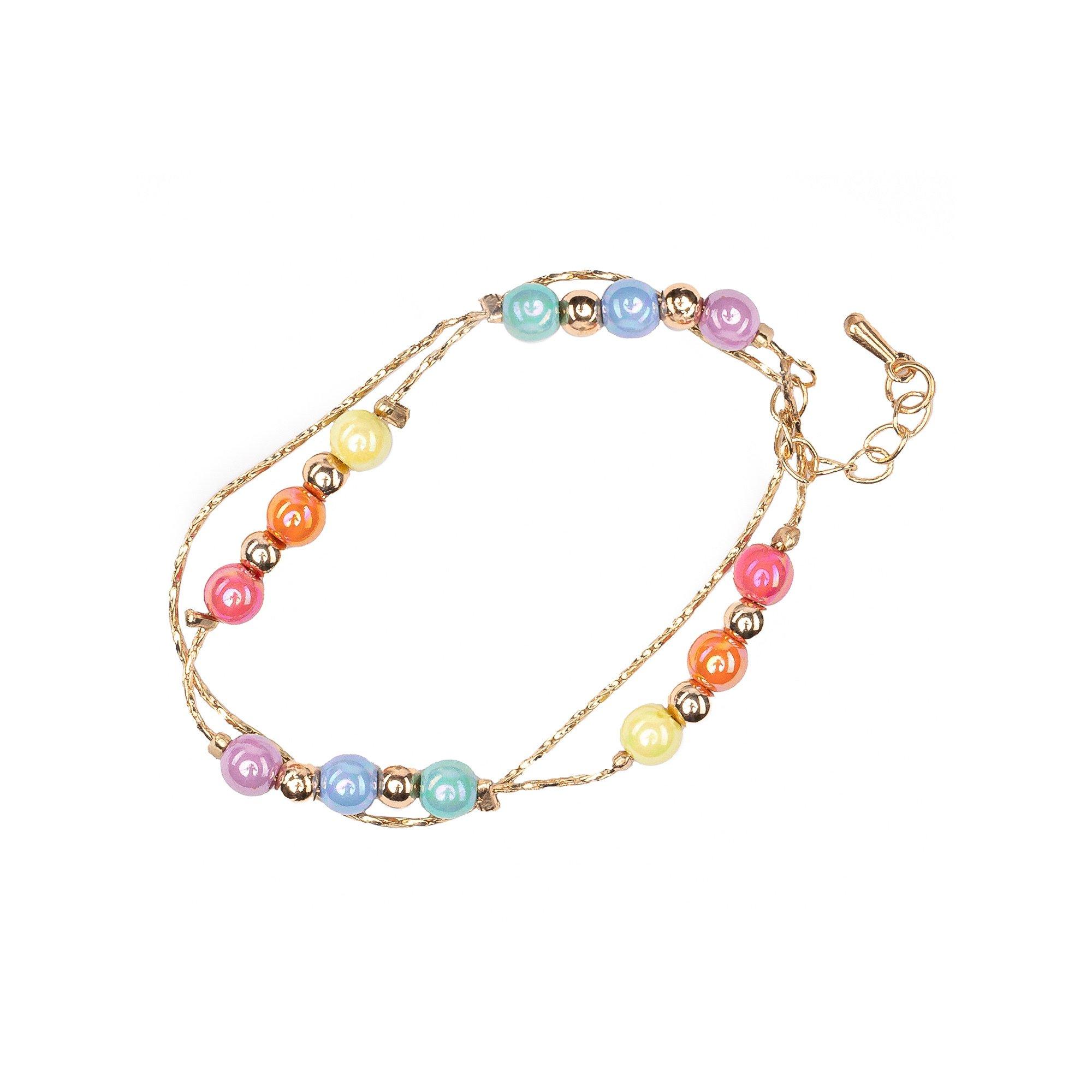 Eine einzigartige Kombination aus zierlichen Goldketten mit perlmuttfarbenen Regenbogen- und Metallperlen macht die Boutique Golden Rainbow Halskette so elegant wie lustig.