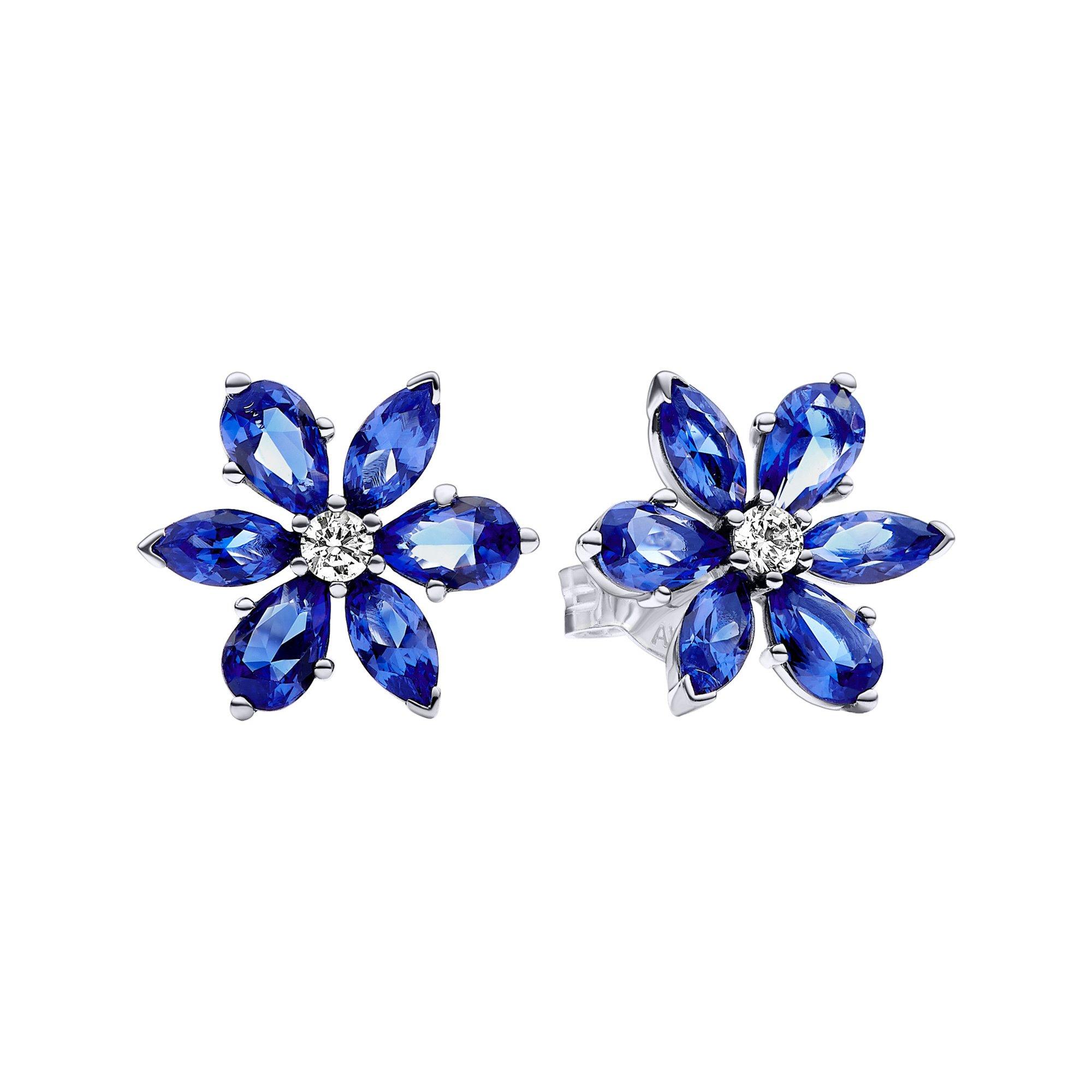 Strahle in allen Farben mit diesen Funkelnden Blauen Herbarium Cluster Ohrringen. Dieser Ohrringe aus Sterling-Silber sind mit künstlichen Kristallen in Blumenform verziert und feiern die Schönheit der Natur. Das Schmuckstück ist abwechselnd mit birnenförmigen und marquiseförmigen blauen Steine besetzt, die die klaren Steine in der Mitte einrahmen. Die verschiedenen Formen erinnern an die Symmetrie, wie wir sie so oft in der Natur finden. Schenke diese Funkelnde Blaue Herbarium Cluster Ohrringe einer Naturliebhaberin in deinem Leben oder trage sie zusammen mit anderen Designs, die vom Herbarium-Motiv inspiriert sind, für einen auffälligen und perfekt abgestimmten Look.