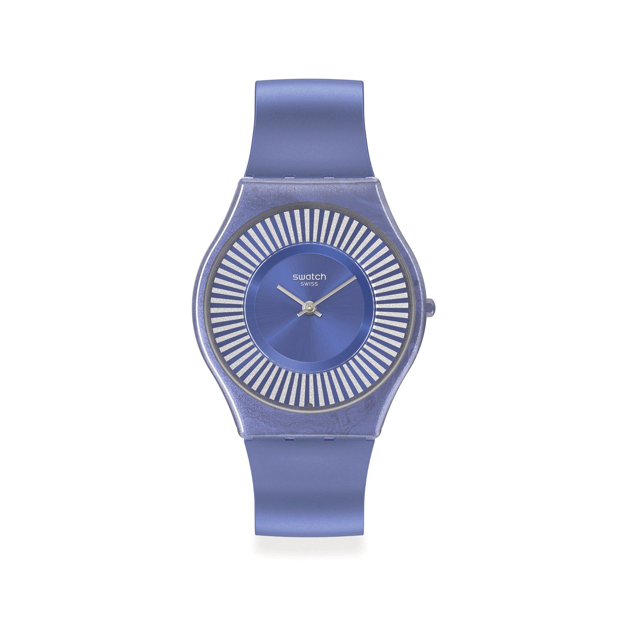 Diese ultraflache Uhr ist eine stilvolle Ergänzung für jeden Look. Das blaue Zifferblatt schimmert durch den Sonnenschliff und den silberfarbenen Aufdruck. Für den Glitzereffekt des dunkelblauen, biobasierten Gehäuses sind die Reflective Chromatics verantwortlich. Armband, Schlaufe und Schliesse sind blau und glänzen mit einem Anodamazing-Effekt.