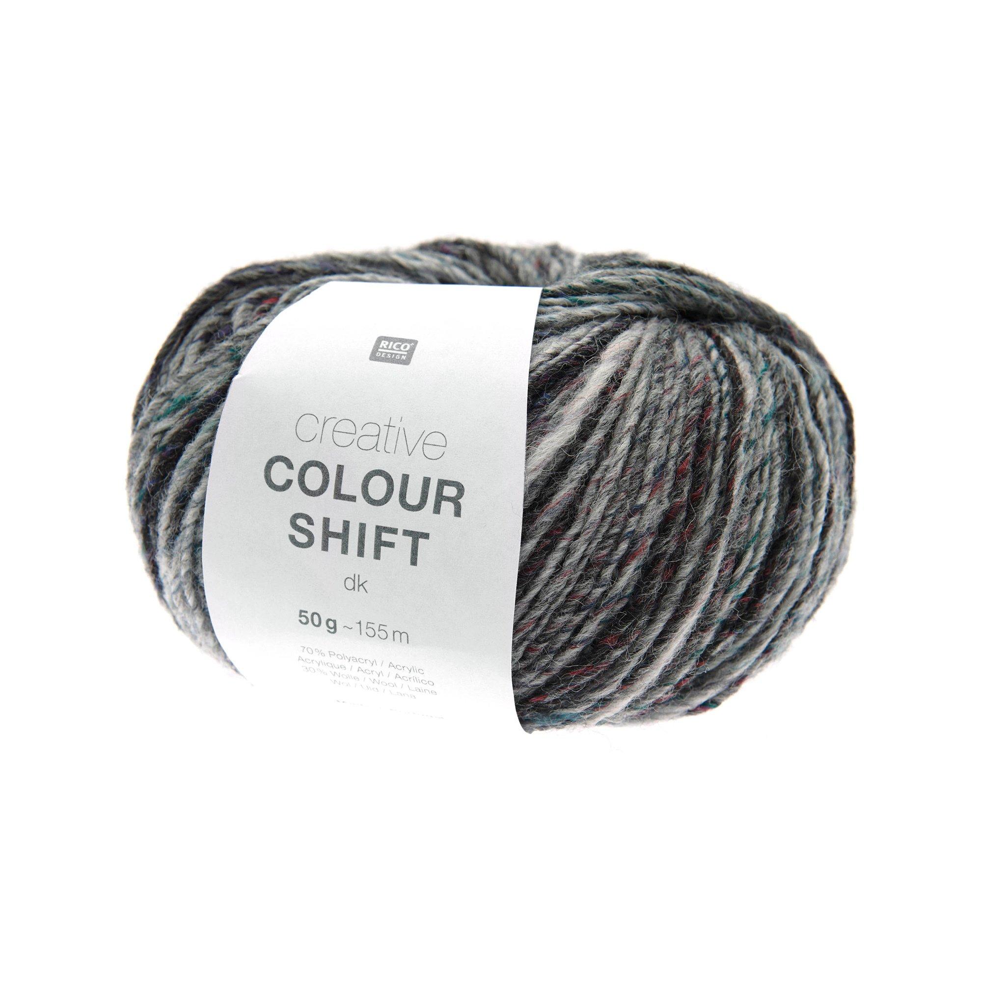In Creative Colour Shift sind 2 Fäden mit unterschiedlichen Farbverläufen ineinander gedreht und geben dem Garn die charakteristische Twist-Optik. Die Strickstücke haben keinen klassischen Streifen-Print, sondern ineinanderlaufende Farbflächen, die sich natürlich je nach Breite des Strickstücks verschieben. Unter den Farben gibt sowohl tonige als auch bunte, sowohl helle als auch dunkle Farben. Der hohe Acryl-Anteil im Garn macht die Strickstücke leicht und geschmeidig.
