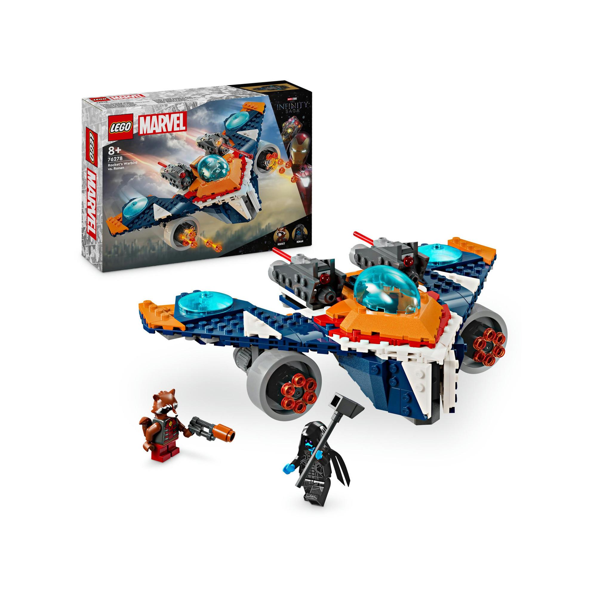 Jeder junge Superheld wünscht sich dieses LEGO® Marvel Spielzeugraumschiff für Kinder. Rockets Raumschiff vs. Ronan (76278) ist ein Bauset, mit dem Jungen und Mädchen ab 8 Jahren die Schlacht von Xandar aus Guardians of the Galaxy aus den Marvel Studios nachstellen und zu vielen anderen Abenteuern in der Galaxie aufbrechen können. Dieses Set zu Guardians of the Galaxy aus den Marvel Studios ist das perfekte Geschenk für Fans, die Filme, megastarke Flugzeuge und Superhelden-Bauspielzeuge lieben. Das Raumschiff verfügt über ein aufklappbares Cockpit für eine Minifigur, 2 Shooter mit Federmechanismus auf dem Dach und einen 6-schüssigen Mega-Shooter unter jedem Flügel. Das Set beinhaltet auch 2 Minifiguren: Rocket mit einem Blaster und Ronanden Ankläger, der einen Umhang und seinen mächtigen stabähnlichen Hammer trägt. Zusätzlichen digitalen Bauspass bietet die intuitive LEGO Builder App, die Baumeister 3D-Modellansichten vergrössern und drehen und ihren Baufortschritt verfolgen lässt.