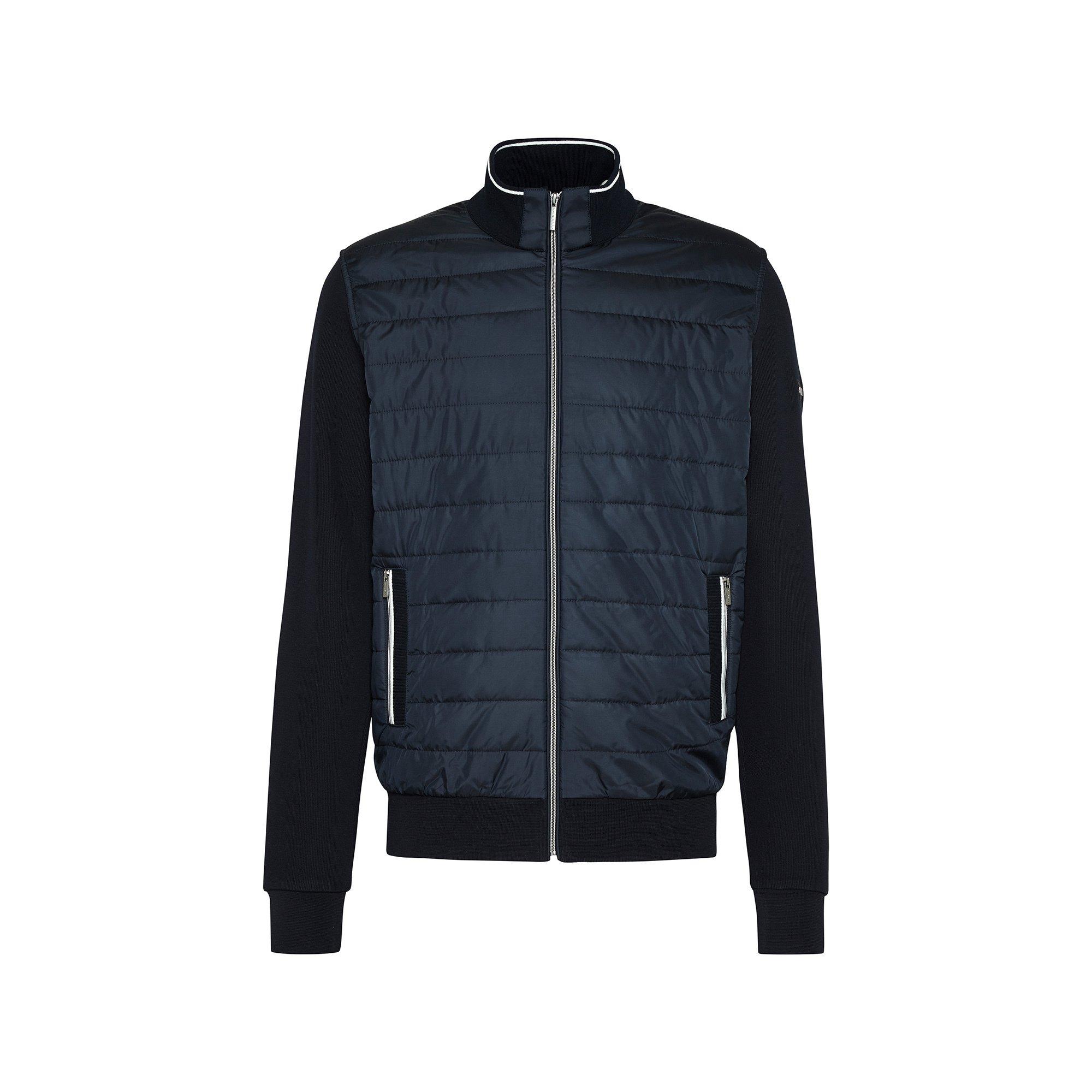 Diese sportliche und schicke Sweatshirtjacke verfügt über eine auffällige Nylonfront und eine bequeme Baumwollmischung. Sie hat Kontraststreifen am Kragen, an den Taschen und am Reissverschluss sowie einen lässigen Stehkragen. Die moderne Passform sorgt für eine körpernahe Silhouette.