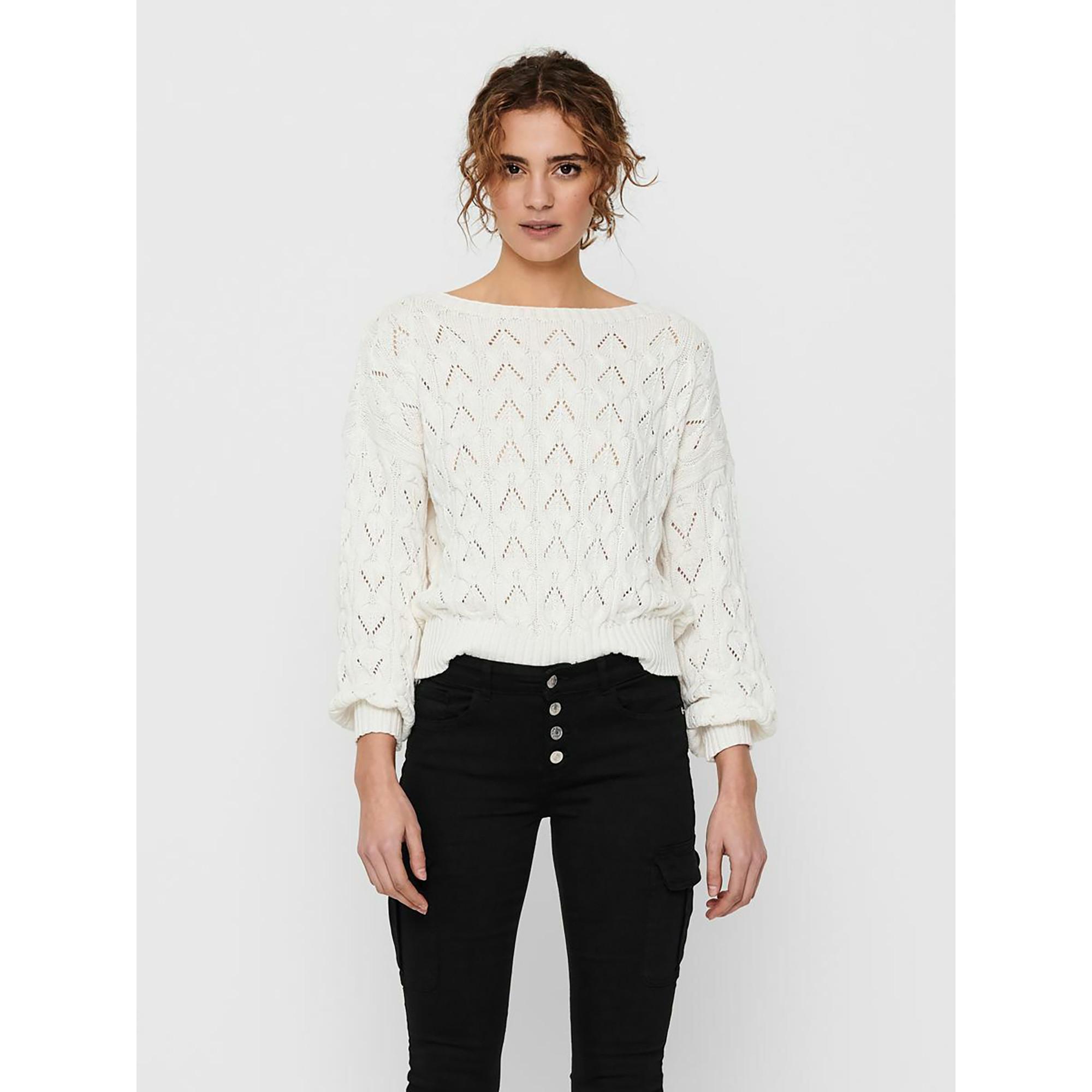 Der ONLBRYNN LIFE STRUCTURE Pullover ist ein Strickpullover mit U-Boot Ausschnitt und langen Ärmeln. Er hat tief angesetzte Schultern und gerippte Ärmelbündchen. Dieser normal geschnittene Pullover verfügt über ein Pointelle Strick-Detail und bietet lässige und unkomplizierte Mode für den Alltag.
