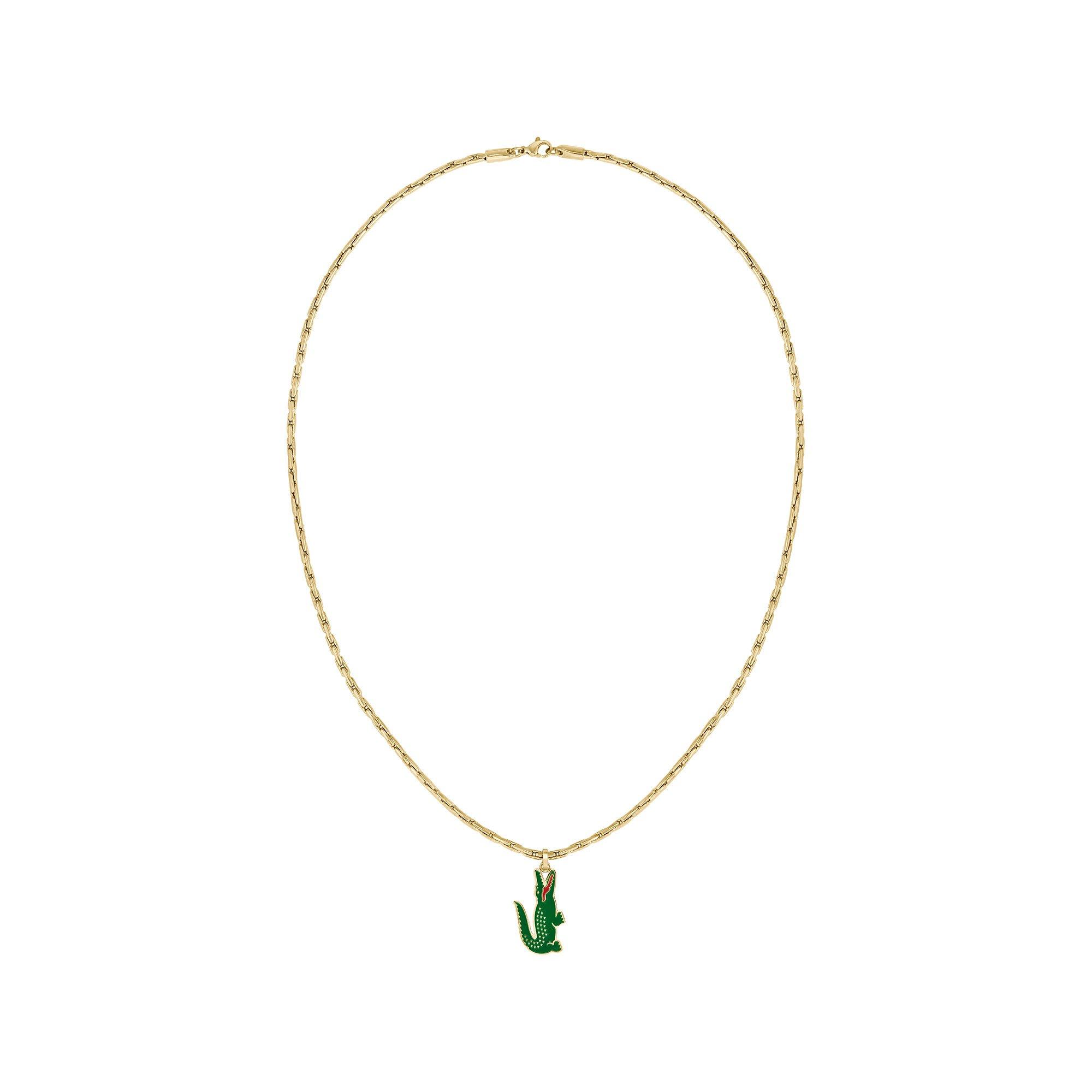 Dieses Herrencollier von Lacoste ist aus goldfarbenem Edelstahl gefertigt und hat eine Länge von 56 cm. Es ist ein audaces und elegantes Schmuckstück, das Ihrem Stil eine männliche Eleganz verleiht und Luxus und Raffinesse symbolisiert.