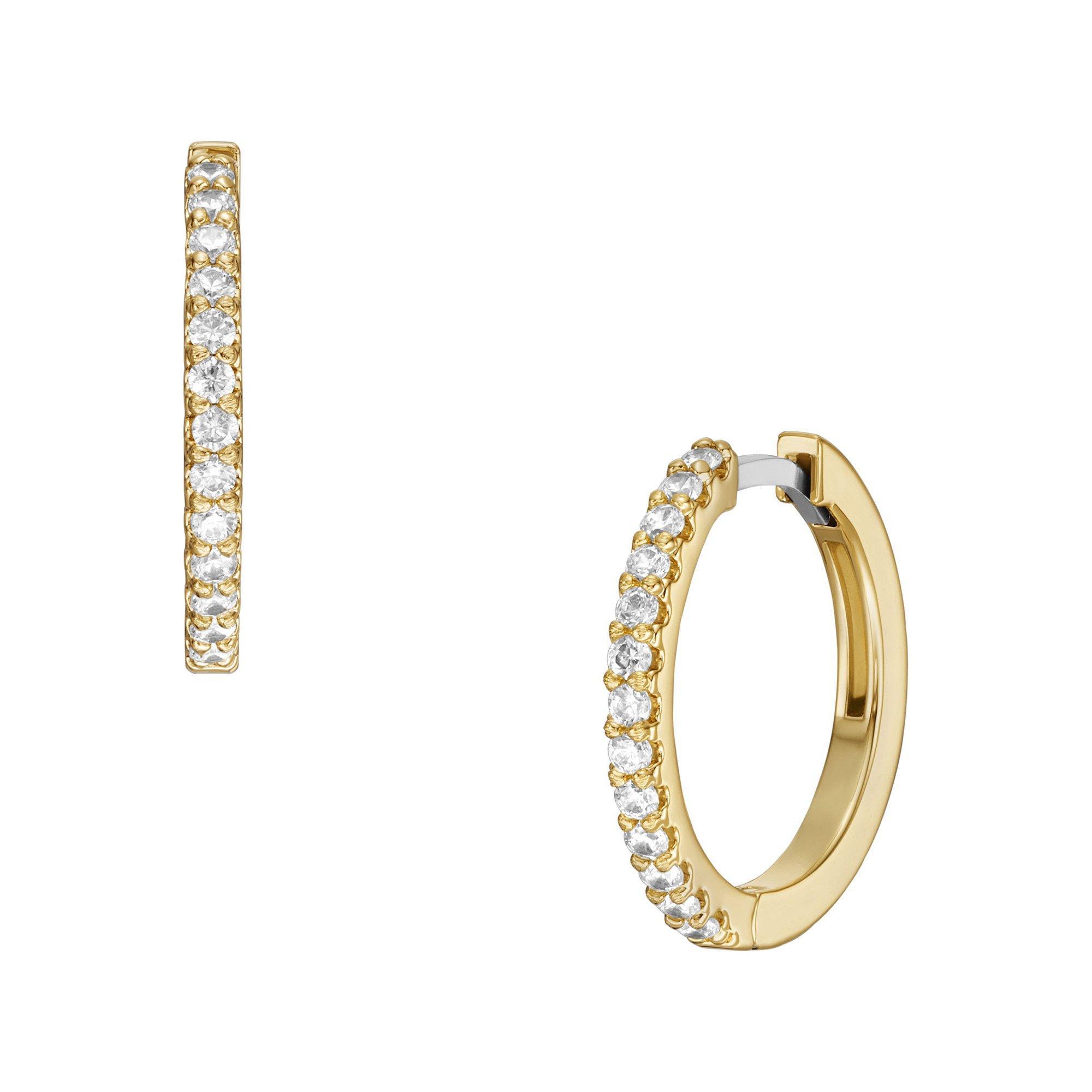 Diese Creolen-Ohrringe aus goldfarbenem Metall mit Glitz haben einen Creolenverschluss.