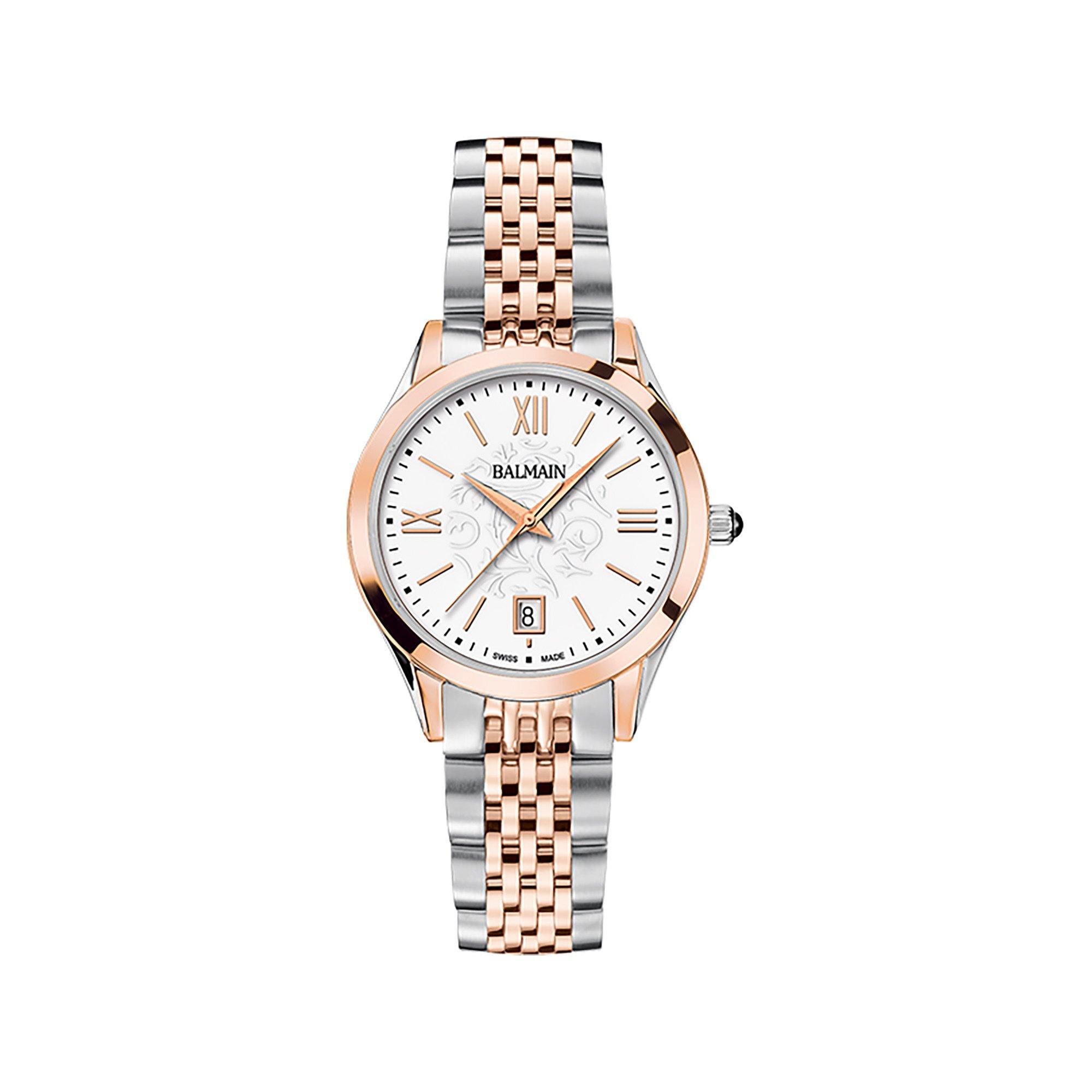 - Gehäuse: Bicolor, Edelstahl und Aussenschicht in rosa PVD