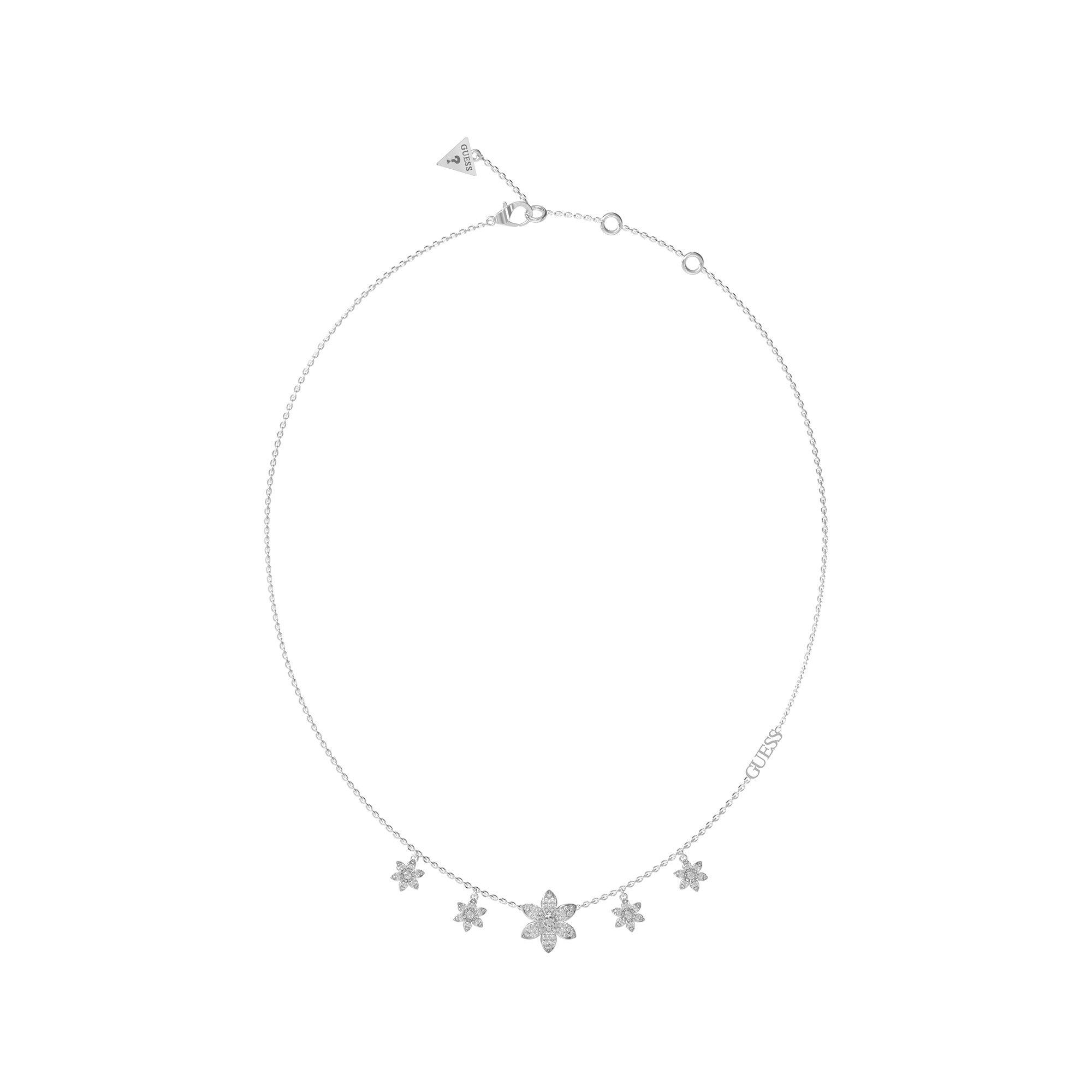 Das «White Lotus» Damencollier von Guess präsentiert sich in hochwertigem Edelstahl mit einer eleganten Silberfarbe. Mit seinen funkelnden Blumen verleiht es Ihrem Look einen zarten Akzent und zieht die Blicke auf sich. Die verstellbare Länge von 40.7 cm bis 45.7 cm ermöglicht eine bequeme Passform. Ein zeitloses Accessoire, das modernem Design und femininer Eleganz vereint.