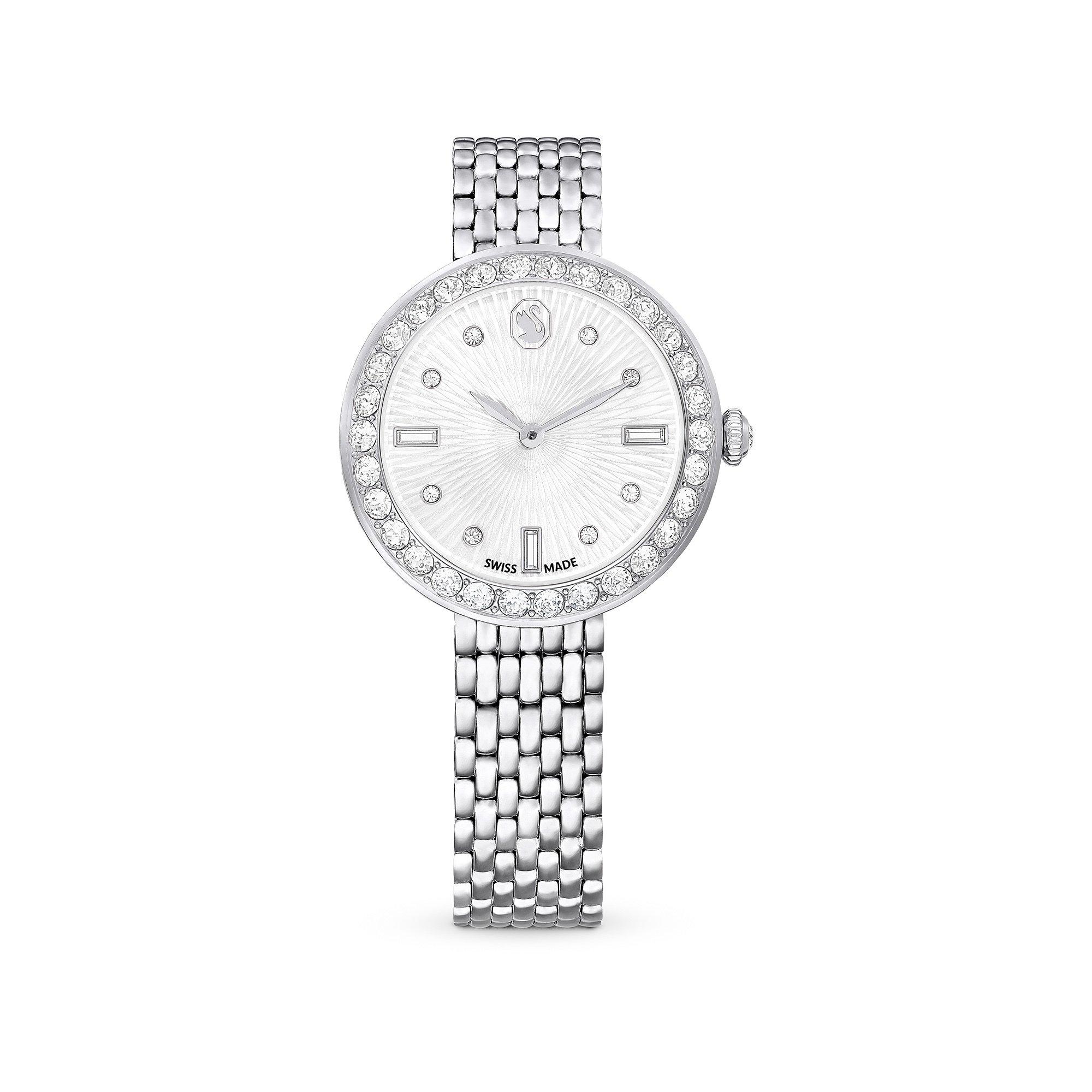 Diese kreativ gestaltete Certa Armbanduhr akzentuiert jedes Outfit. Das runde Edelstahlgehäuse mit einem Durchmesser von 30 mm präsentiert eine Lünette mit 30 Kristallen in der exklusiven Pavé-Technik von Swarovski. Auf dem faszinierend gefertigten Guilloche-Zifferblatt unter dem schützenden Mineralglas glänzen ein Schwan-Logo auf Position 12 sowie Kristallindexe im Rund- und Baguette-Schliff. Ein Kristallelement in der Uhrenkrone rundet diese Schönheit ab. Das siebengliedrige Edelstahlarmband verleiht Ihrem Handgelenk edlen Stil. Diese Swiss Made Armbanduhr ist wasserabweisend bis 50 m Tiefe und sorgt mit exquisiter Ganggenauigkeit dafür, dass Sie jeden Tag auf der Höhe der Zeit sind.
