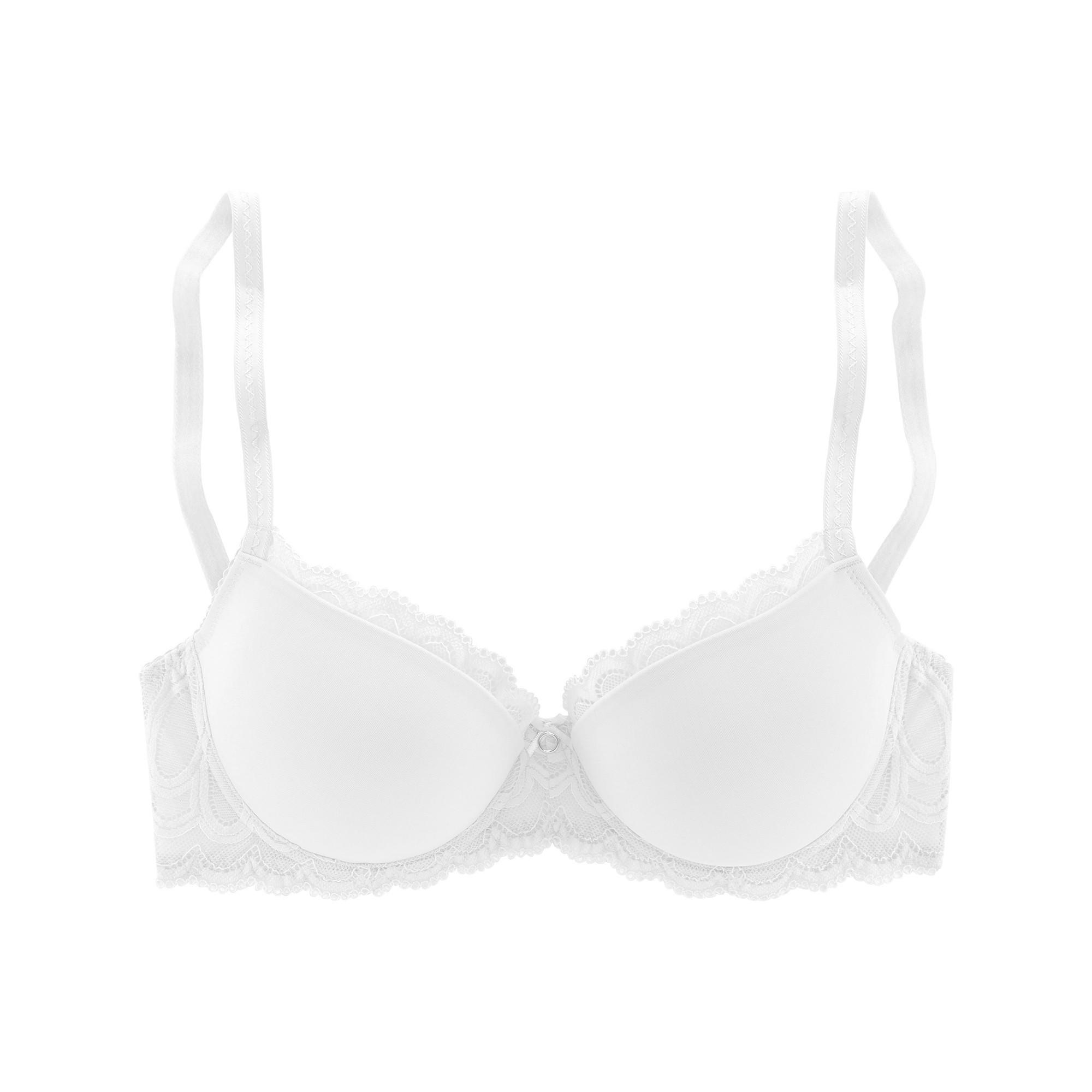 Dieser klassische Schalen-Bügel-BH mit geformten Cups aus weicher Schale überzeugt durch einen hohen Tragekomfort. Gleichzeitig sorgen die Zierschleife und das Spitzenband an der Kante der Cups für einen verführerischen Touch.
