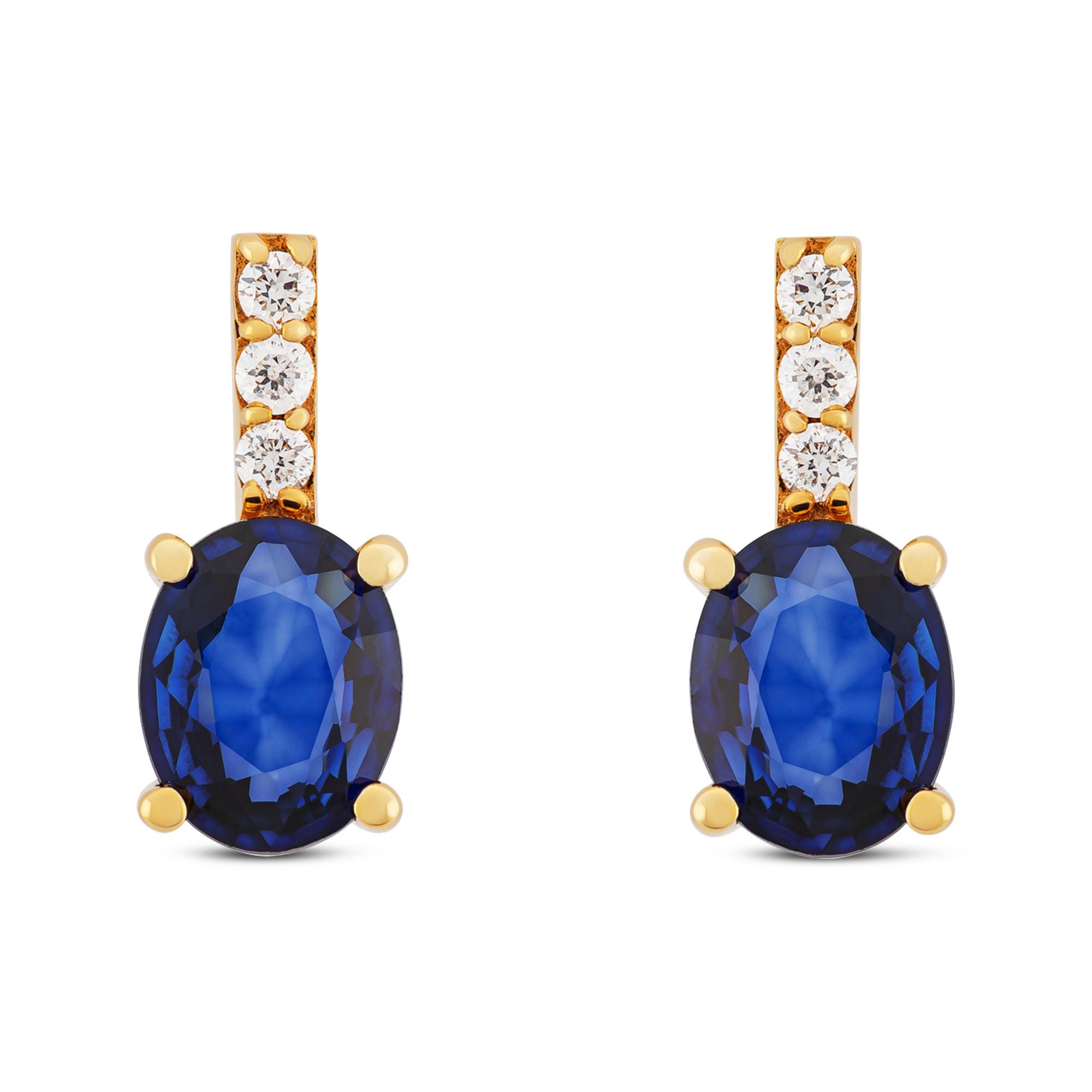 Diese Ohrstecker von Zen Diamond sind mit hochkarätigen, facettiert geschliffenen Saphiren bestückt, die lichtdurchlässig gefasst sind. Gekrönt wird jeder Edelstein von drei fein geschliffenen Diamanten, die das Design auf elegante Weise veredeln – anmutig, mit royaler Ästhetik.