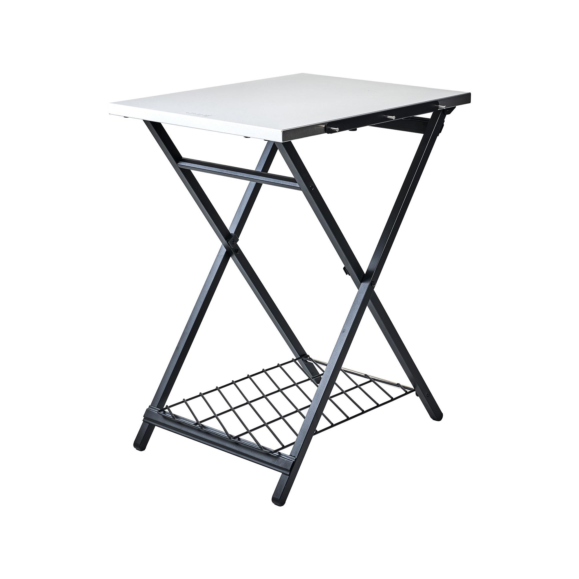Dieser Klapptisch ist mit allen Ooni Öfen kompatibel und verfügt über eine professionelle Arbeitsfläche aus Edelstahl, einen pulverbeschichteten Rahmen aus Karbonstahl, eine integrierte Ablage und einen Werkzeughalter mit Haken.