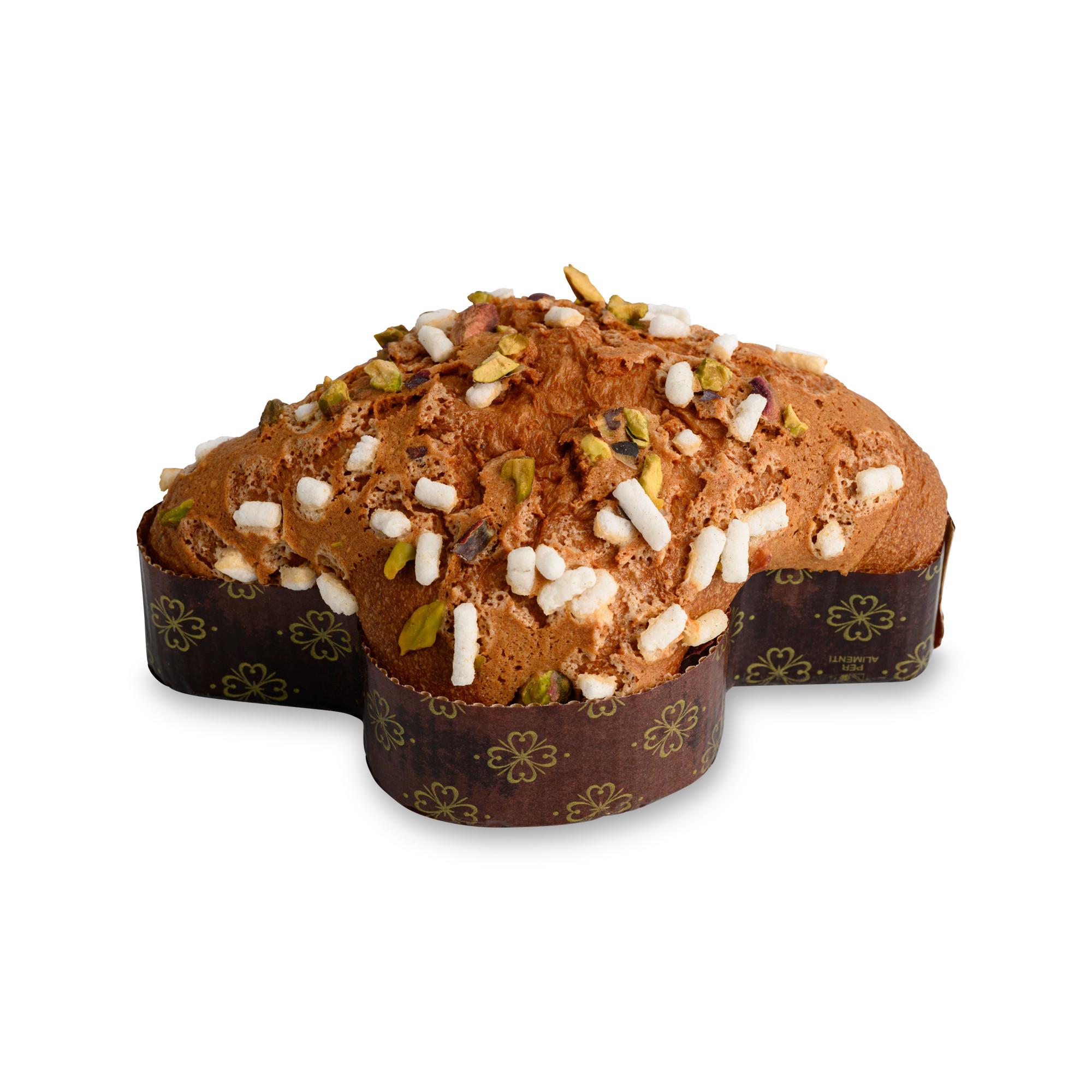 | Zutaten | WEIZENMEHL, BUTTER, Zucker, Mandelglasur 11% (Zucker, EIWEISS, Reismehl, MANDELmehl, modifizierte Stärke, PISTAZIENpaste, Aromen), EIER, EIGELB, natürliche Hefe (aus WEIZENmehl), Mandarinenpaste 3% (Mandarinen 52%, Zucker, Glukosesirup, Zitronensaft), Kristallzucker 3%, sizilianischer Honig, Invertzuckersirup, PISTAZIENkörner 2%, Emulgator: Mono- und Diglyceride von Fettsäuren, Kakaobohnen, MagerMILCHpulver, Salz, Vanille, ätherisches Mandarinenöl. |