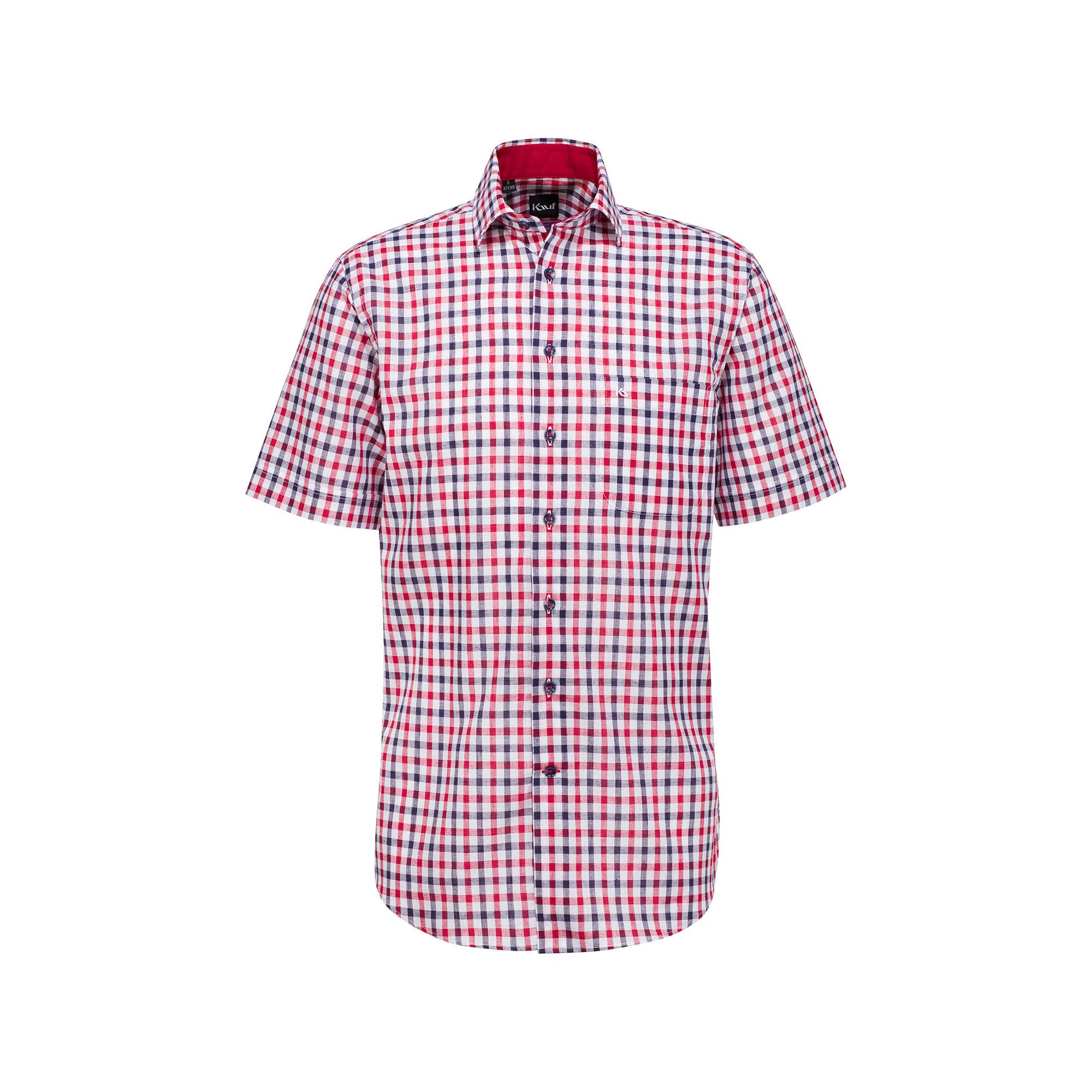 Dieses karierte Freizeithemd von Kauf aus kühlendem, atmungsaktivem Baumwoll-Leinen-Gewebe ist das ideale Basic für warme Tage. Es ist klassisch ausgestattet mit Kentkragen, kurzem Arm und lässig abgerundetem Saum.