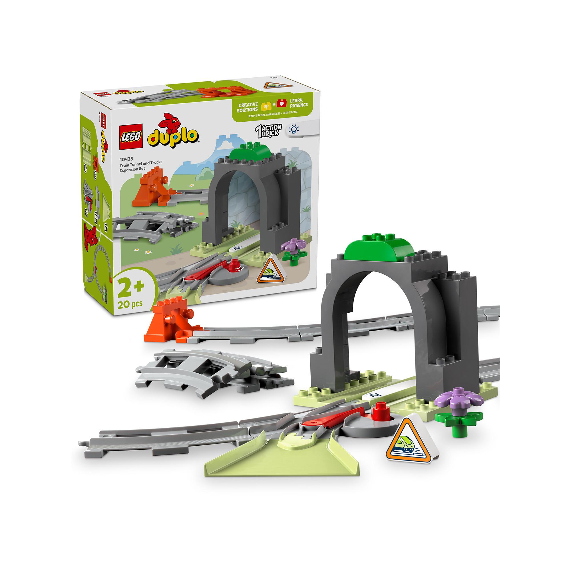 Eisenbahntunnel und Schienen – Erweiterungsset (10425) ist ein Spielzeug, das Kleinkinder noch mehr spannende Abenteuer mit ihren Eisenbahnsets darstellen lässt. Vorschulkinder ab 2 Jahren können einen Tunnel und zusätzliche Schienensegmente zu ihren (separat erhältlichen) interaktiven LEGO DUPLO Town Eisenbahnsets (10427 und 10428) hinzufügen und ganz spielerisch lernen.
