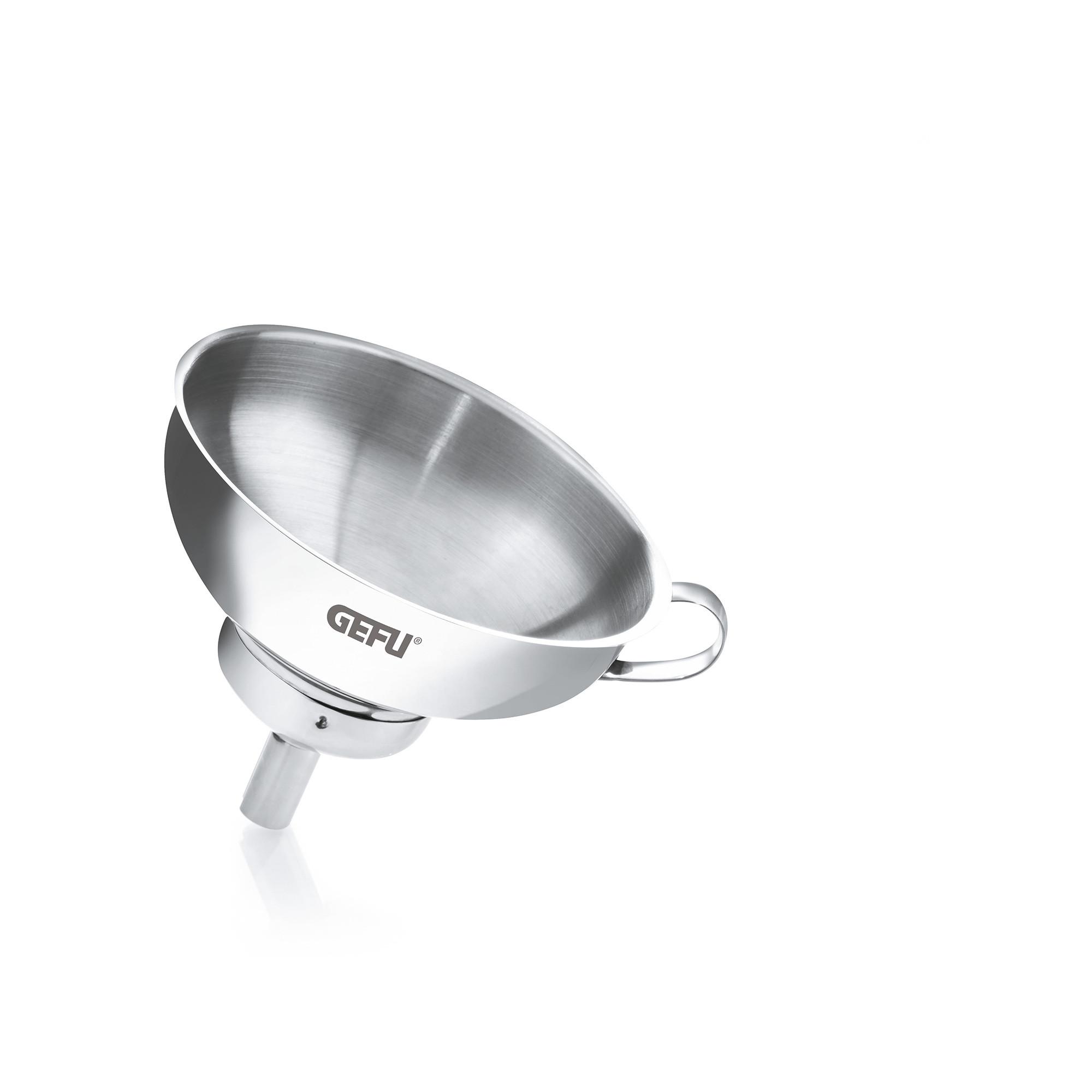 Selbst gekochte Marmelade wird mit dem praktischen Einmachtrichter ebenso mühelos wie sauber in Gläser gefüllt. Mit dem Einmachtrichter ist das Abfüllen selbst gemachter Marmelade eine saubere Sache! Und durch den herausnehmbaren Siebeinsatz gelangt der fruchtige Aufstrich kernfrei ins Glas. Mit dem abnehmbaren Reduziertrichter, der durch einen Bajonett-Verschluss sicher mit dem Trichter verbunden ist, können auch Gewürzmühlen oder Salzstreuer bequem und zielsicher befüllt werden. Einsetzbar bei Behältern mit Durchmessern zwischen 1,5 und 5,5 cm.