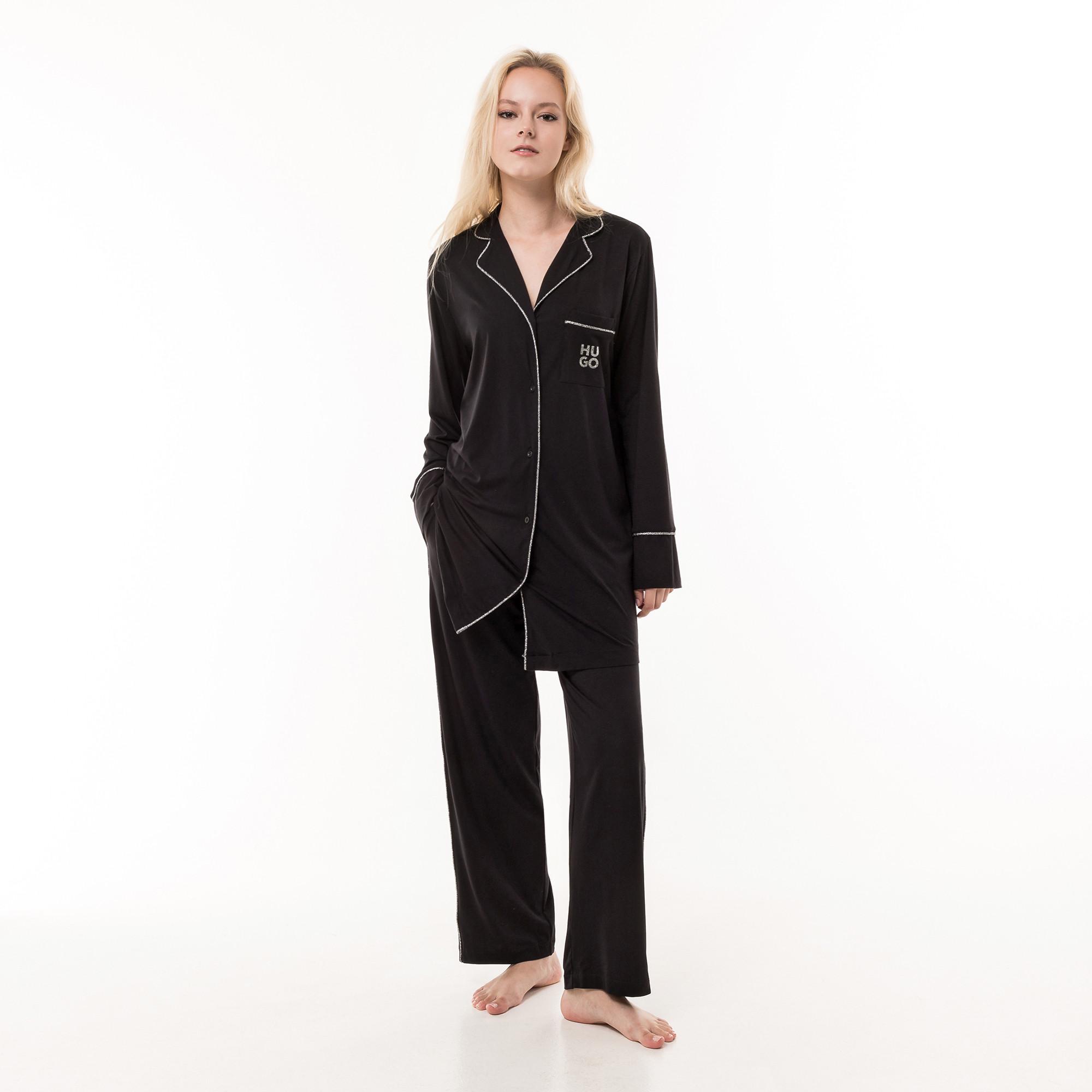 Dieses Langarm-Nachthemd bietet Komfort und Stil für entspannte Abende. Das Design verfügt über einen klassischen Reverskragen und eine durchgehende Knopfleiste, die eine bequeme Passform gewährleistet. Die kontrastierende Paspelierung entlang des Kragens, der Knopfleiste und der Ärmelbündchen verleiht dieser Nachtwäsche eine raffinierte Note.