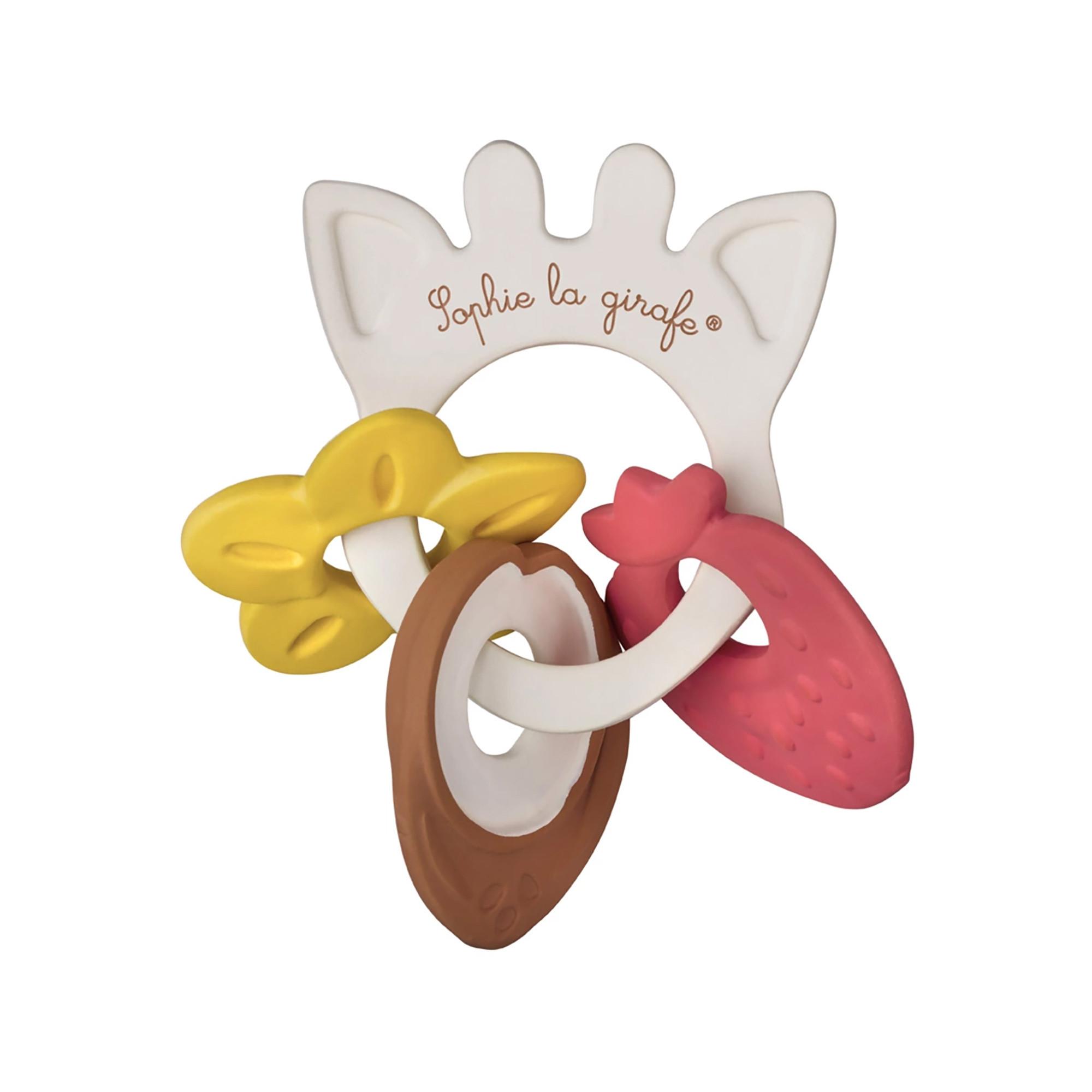 Dank des leicht duftenden Naturkautschuks wird der Geruchssinn des Babies stimuliert! Der Greifring besteht aus einem Hauptring mit dem süssen Duft von Naturkautschuk und 3 verschiedenen Fruchtmedaillons, die sanft nach Vanille, Erdbeere und Kokosnuss duften.