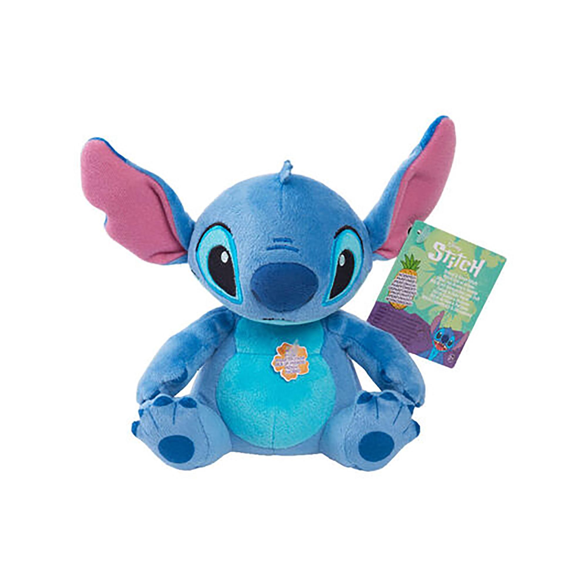 Dieser kuschelige 15 cm grosse Plüsch ist aus samtweichem Stoff gefertigt und mit nach Ananas duftenden Bohnenkügelchen gefüllt. Wenn du seinen Bauch drückst, hörst du einen super albernen Satz in Stitchs Original-Aliensprache. Dieser ganz besondere blaue Ausserirdische sorgt für ein breites Lächeln, süss duftende Streicheleinheiten und schelmische Gesellschaft beim Spielen zu Hause, bei Pyjamapartys, langen Autofahrten und bei jeder anderen Gelegenheit, die nach überirdischem Spass verlangt.