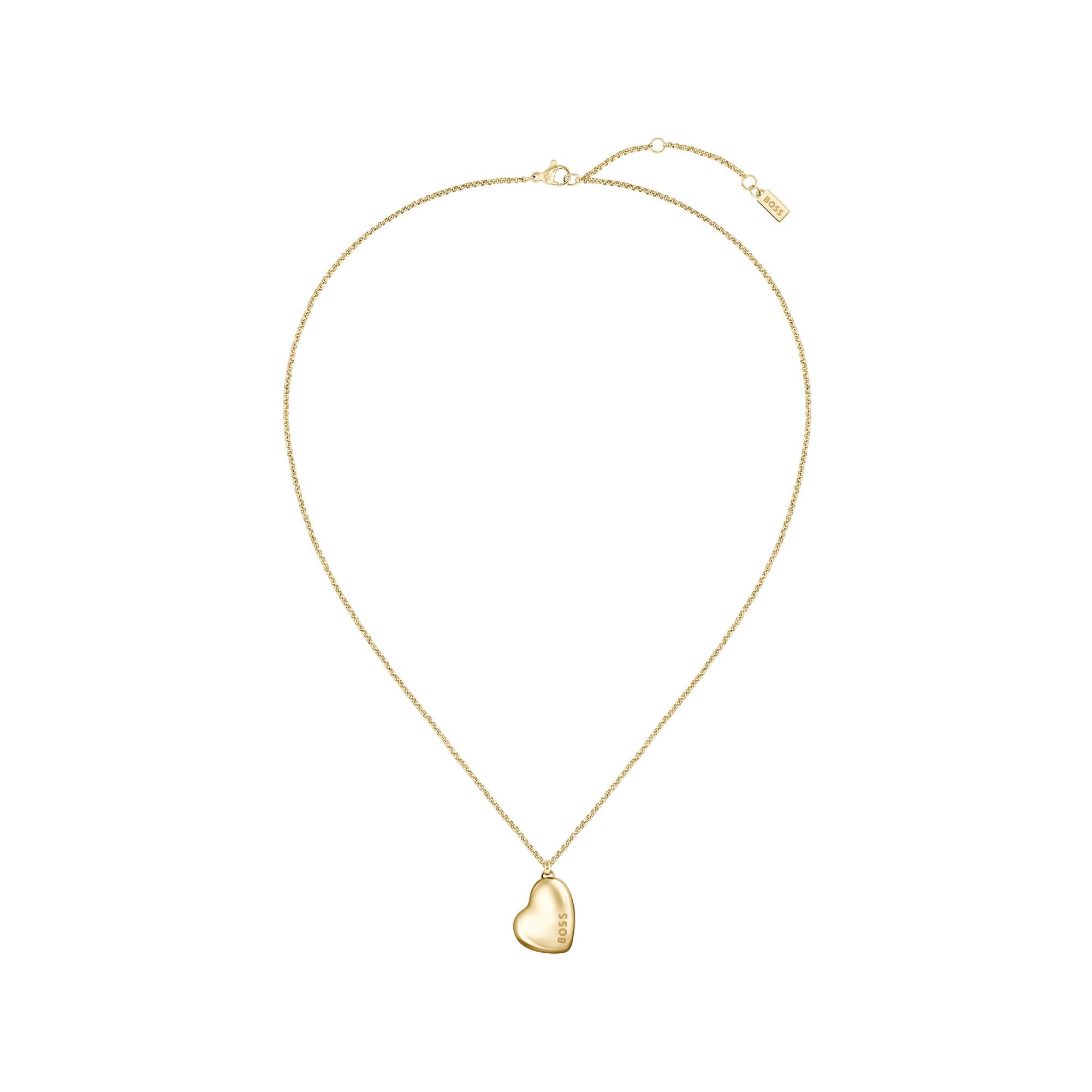Schlanke BOSS Halskette. Das schicke Accessoire aus goldfarbenem Edelstahl ist mit einem herzförmigen Anhänger mit dezentem Logo versehen. Länge: 50,0 Zentimeter.