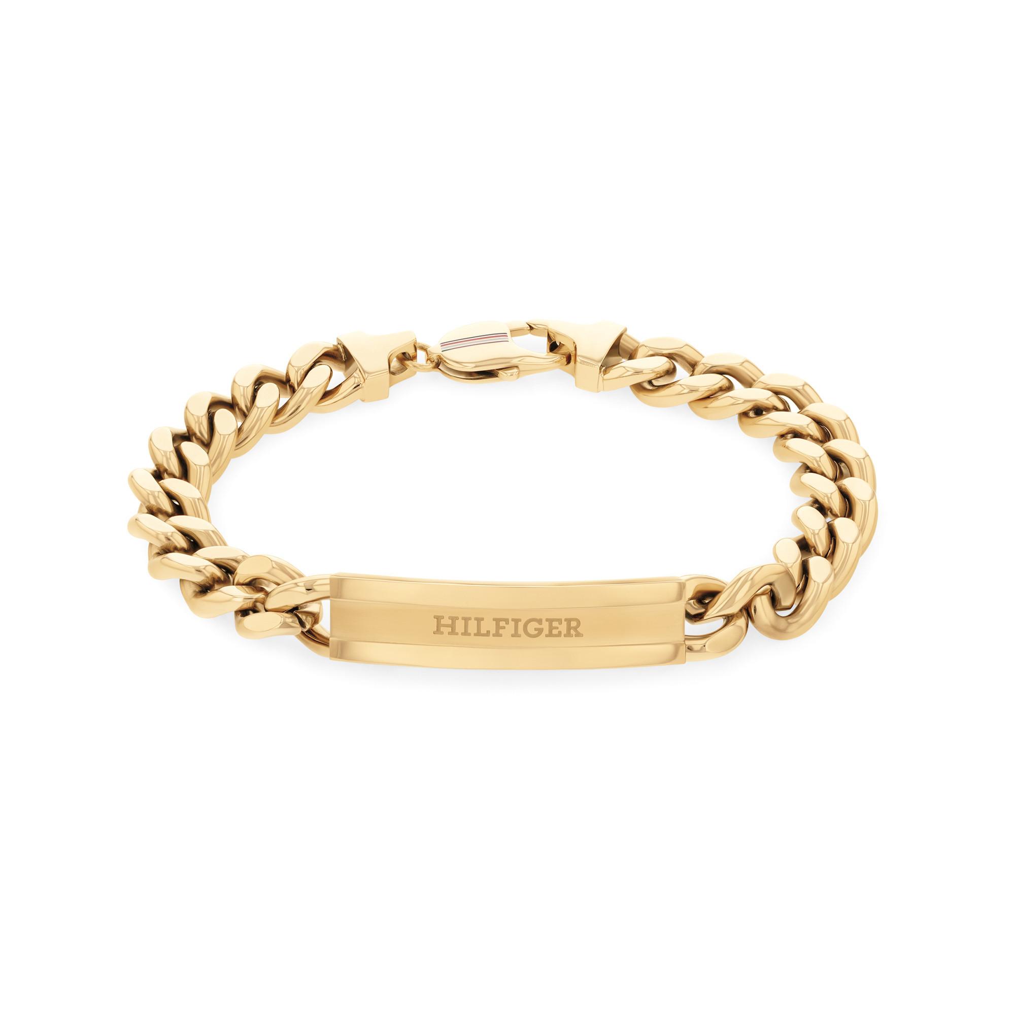 Das Herrenarmband "Clash" von Tommy Hilfiger besticht durch seine gegliederte Optik und die Verwendung von gelbgoldenem Edelstahl, was ihm einen angenehmen Look verleiht und es zu einem vielseitigen Accessoire macht, das perfekt zu verschiedenen Outfits passt.