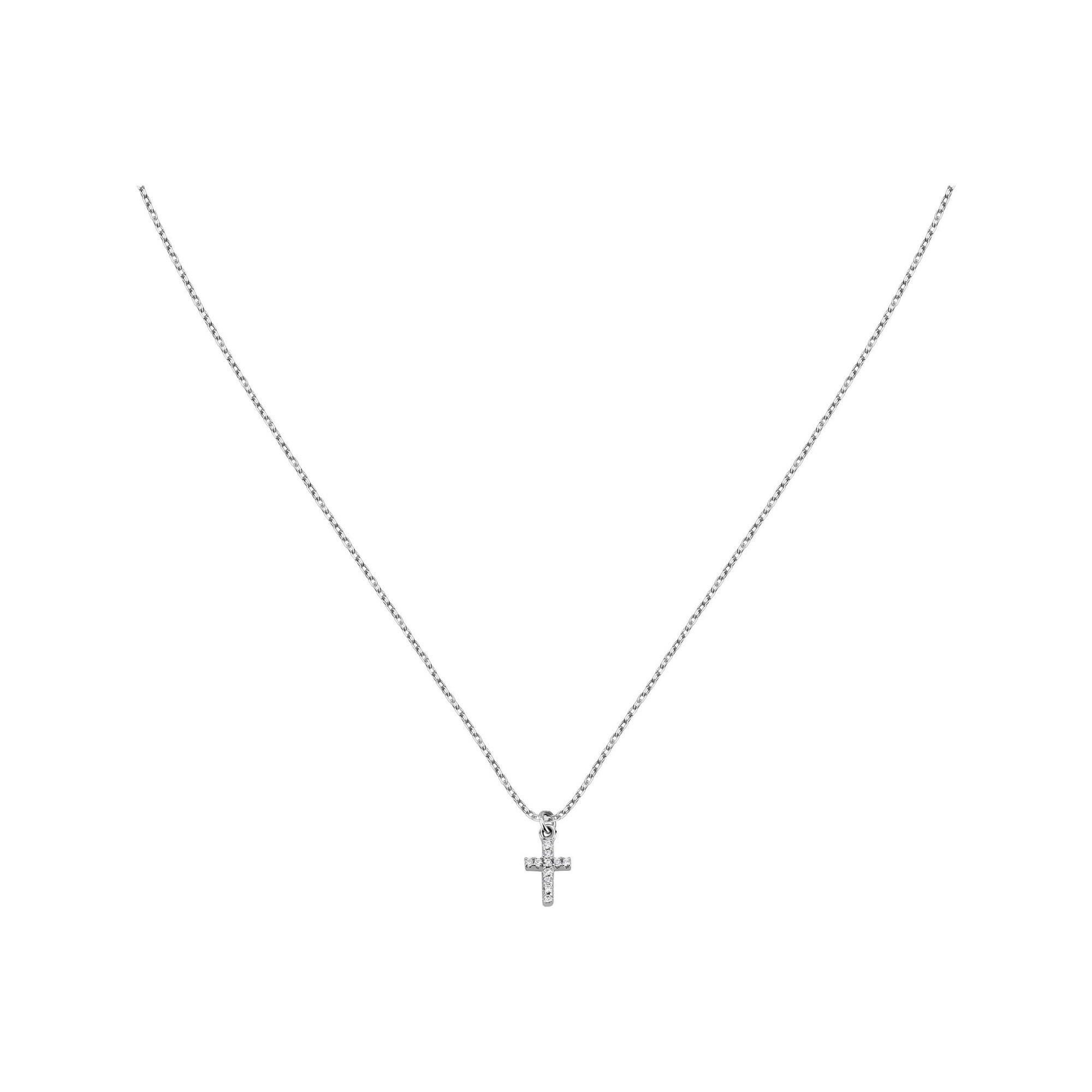 Diese Halskette aus der La Petite Story Silberkollektion ist ein elegantes Accessoire für Frauen. Gefertigt aus Sterlingsilber und verziert mit einem funkelnden Zirkonia-Kreuzanhänger in Weiss, verleiht sie jedem Outfit eine subtile Note von Glanz und Spiritualität.