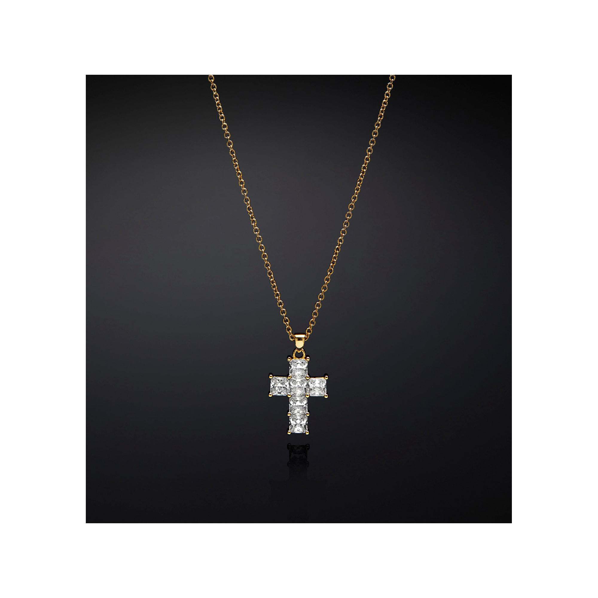 Anhänger-Halskette aus 18 Karat vergoldetem Material mit einem kreuzförmigen, quadratischen weissen Zirkonia.