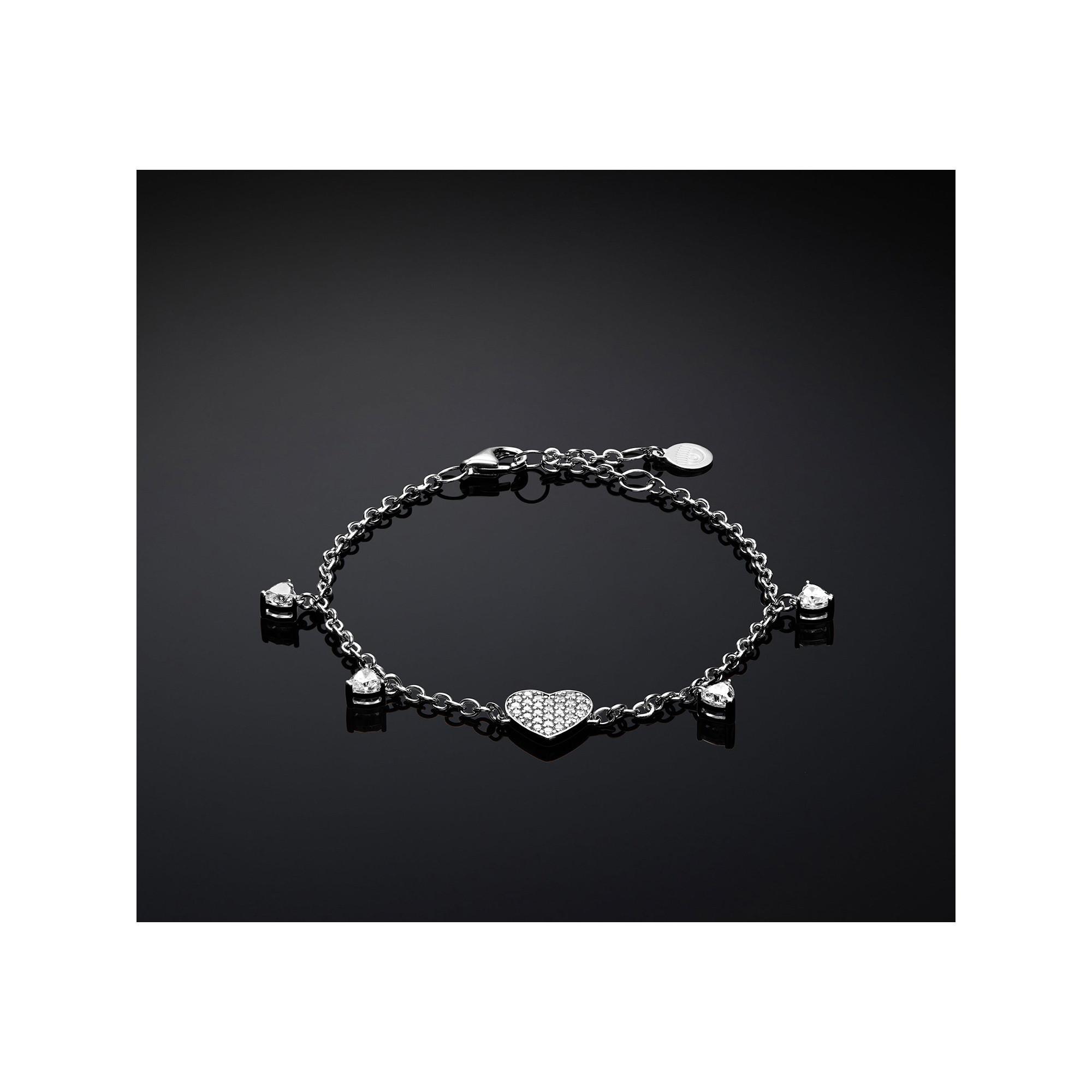 Armband aus 925er Sterlingsilber mit herzförmigem weissem Kubikzirkonia und zentralem Pavé-Anhänger.