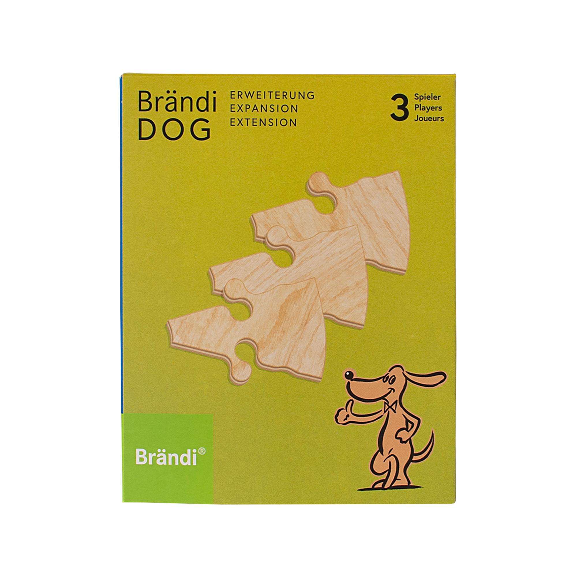 Nun ist Kampfgeist gefragt! Das Brändi Dog für drei Personen bietet eine spannende Al- ternative zum klassischen Brändi Dog. Jede Person spielt für ihr eigenes Glück. Das Brän- di Dog 3er ist eine Erweiterung zur Brändi Dog Familie. Das Spielbrett für drei Personen besteht aus drei Elementen der Brändi Dog Grundversion, welche mit den drei Erweite- rungselementen verbunden werden. Die Spielregeln sind bereits in der Spielanleitung der Grundversion beschrieben.