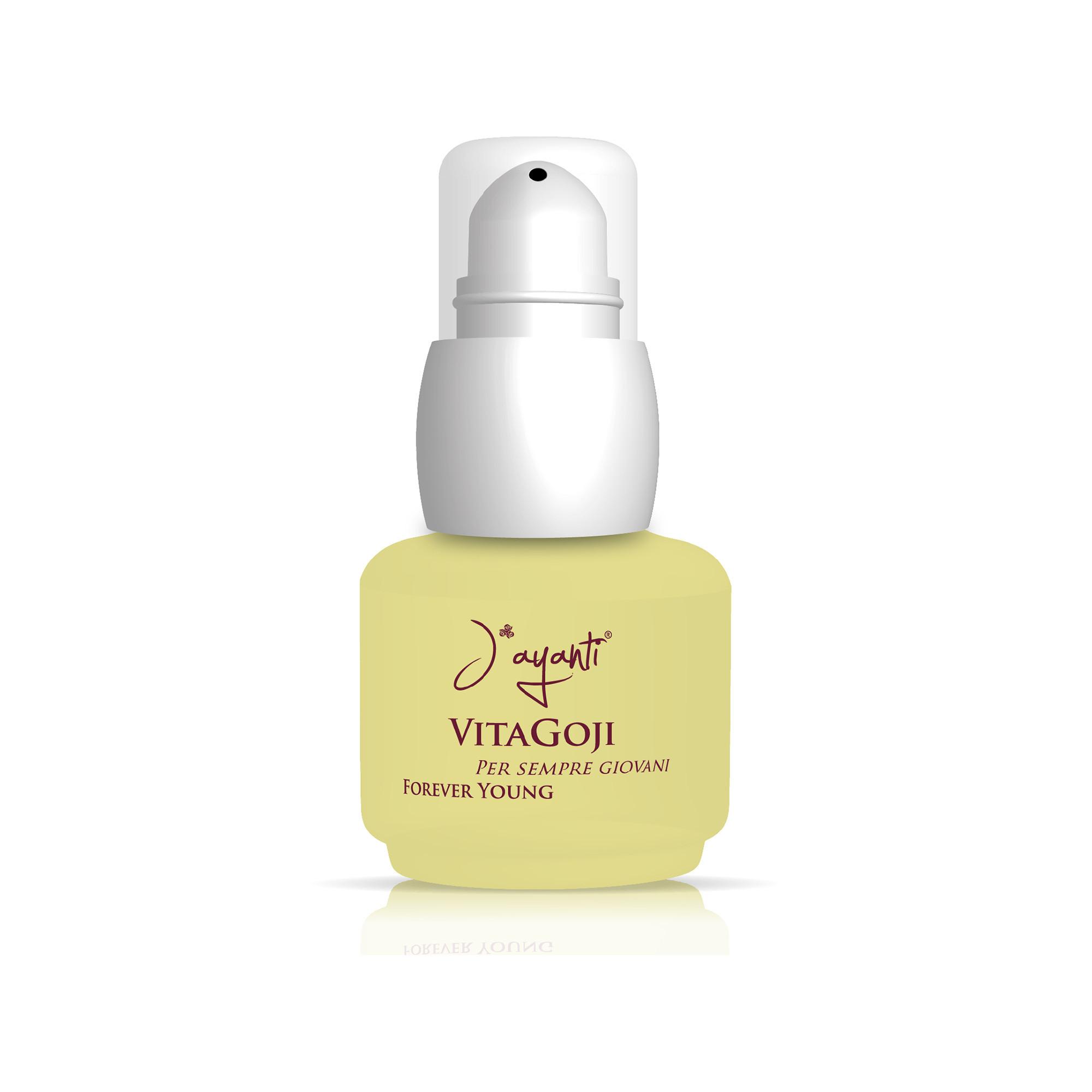 Vitagoji ist ein 100% biologisches Serum der ewigen Jugend mit einem hohen Anteil an biologischem Goji-Beeren-Extrakt und biologischem Baobab-Öl. Goji ist bekannt für seine aussergewöhnlichen antioxidativen Eigenschaften und für seinen Reichtum an Vitaminen, Mineralien und Carotinoiden. Weshalb hält dieses Serum die Haut jung, strahlend und glatt? Es ist reich an Tocopherolen, die haben grosse starke