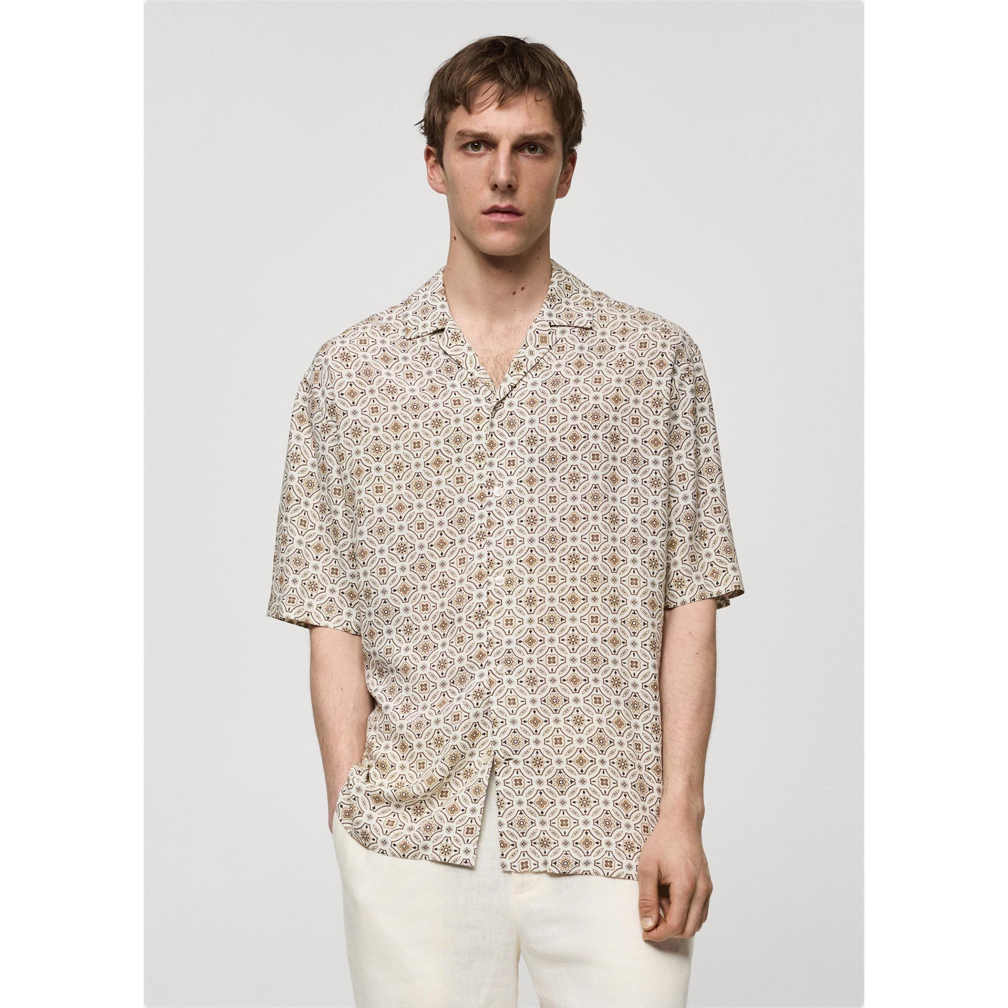 Dieses Kurzarmhemd präsentiert sich mit einem markanten Muster und sorgt für einen stilvollen und modernen Look. Das Design umfasst einen Bowlingkragen und einen Knopfverschluss vorne.