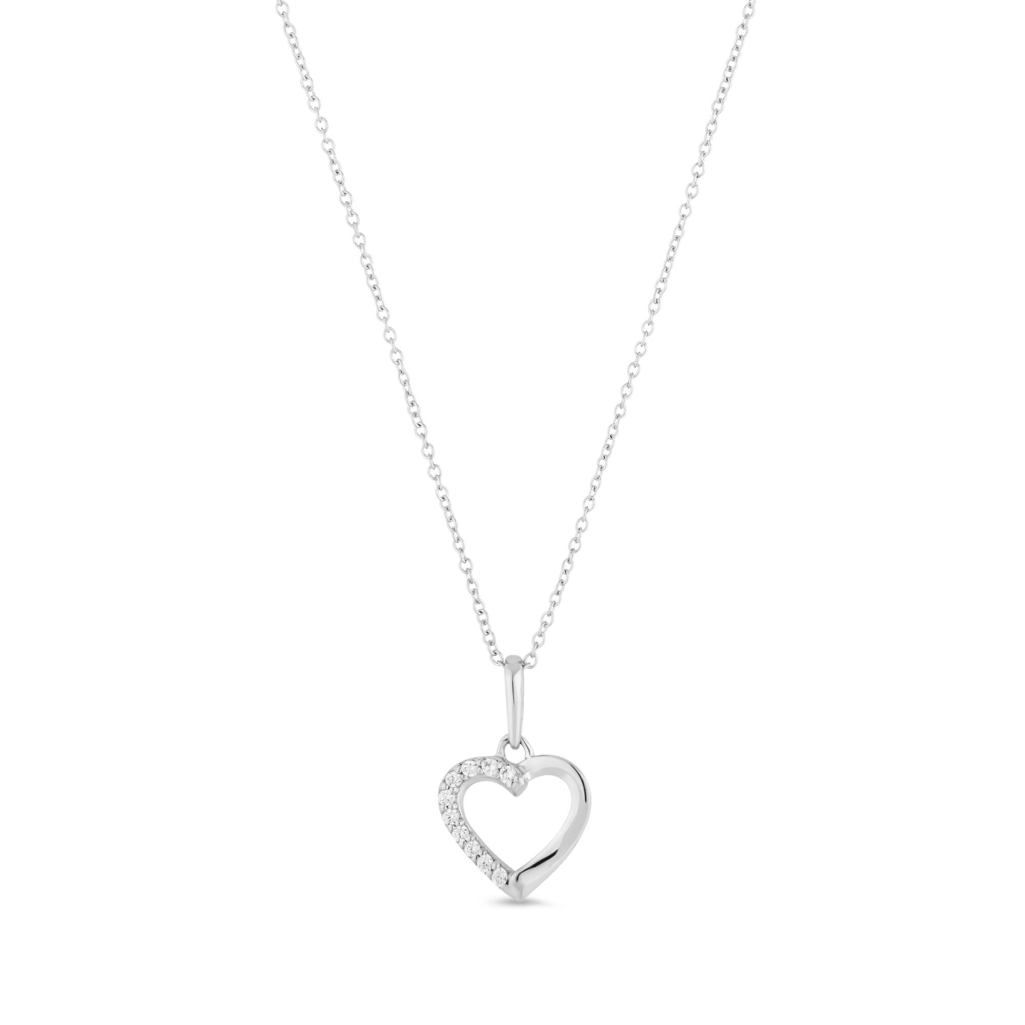 Dieses Collier von L'Atelier Gold 18 Karat by Manor besteht aus einer feinen Kette aus 18-karätigem Weissgold mit einem halbseitig mit Zirkonia besetzten Herz-Anhänger. Die Kette schliesst per Federringverschluss.