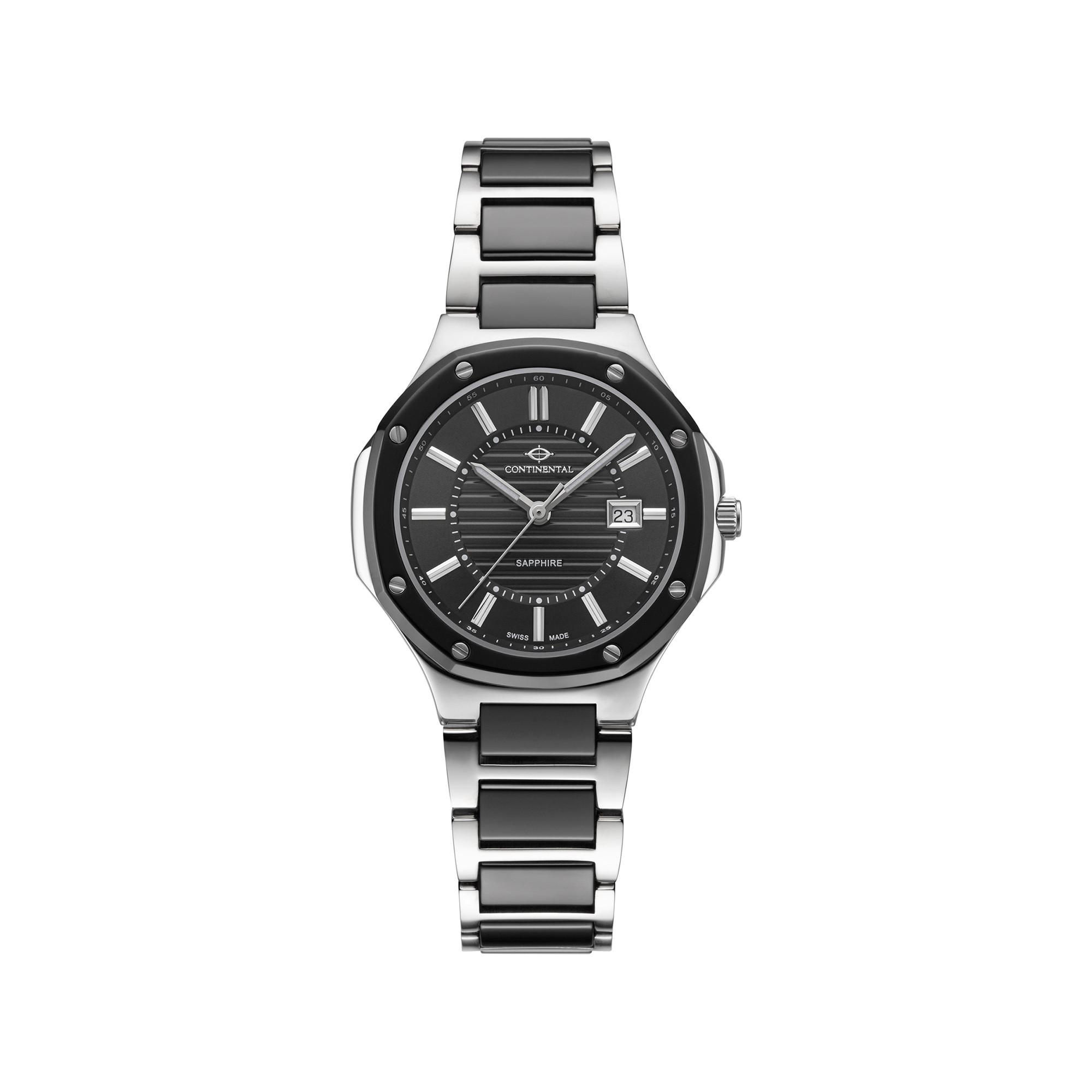 Diese Uhr hat ein Gehäuse aus Edelstahl mit einem Durchmesser von 32 mm, ein Edelstahlarmband, ein schwarzes Zifferblatt und Saphirglas. Sie ist bis 50 Meter wasserdicht und wird vom ETA F04.115 Uhrwerk angetrieben. Zusätzlich verfügt sie über ein Keramikband und Lünette.