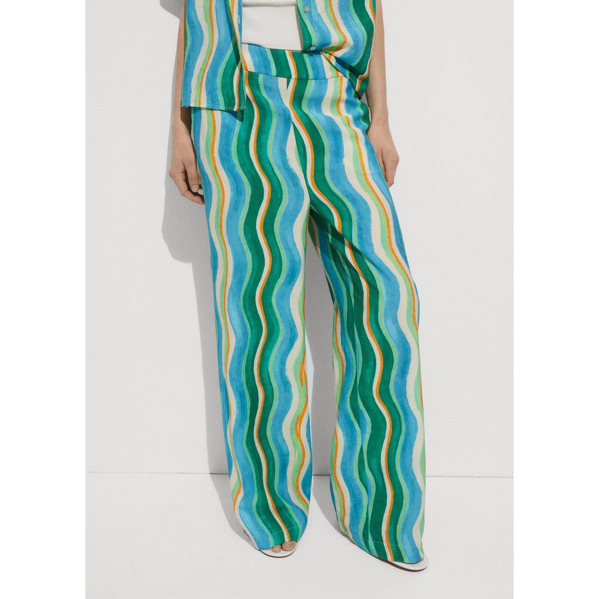 MANGO, Mykonos Wavy Striped Wide Leg Hose