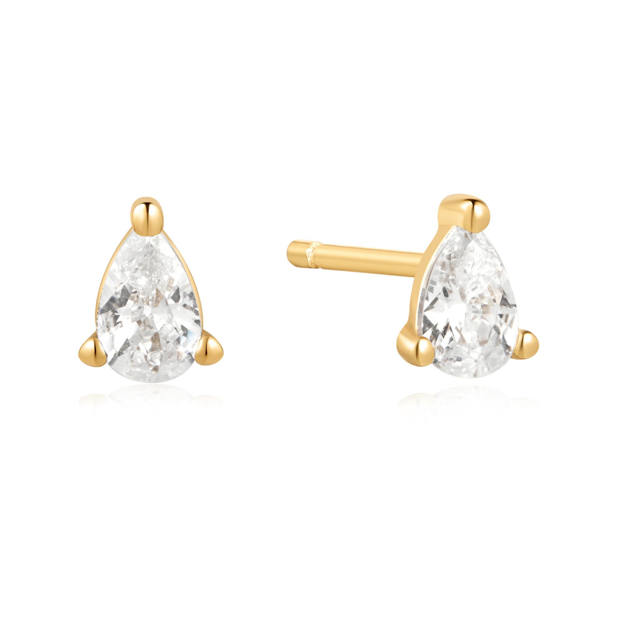 Diese Miniatur-Ohrringe in Tropfenform sind aus vergoldetem 925er Sterling Silber gefertigt und verfügen über jeweils einen Cubic Zirkonia Stein.