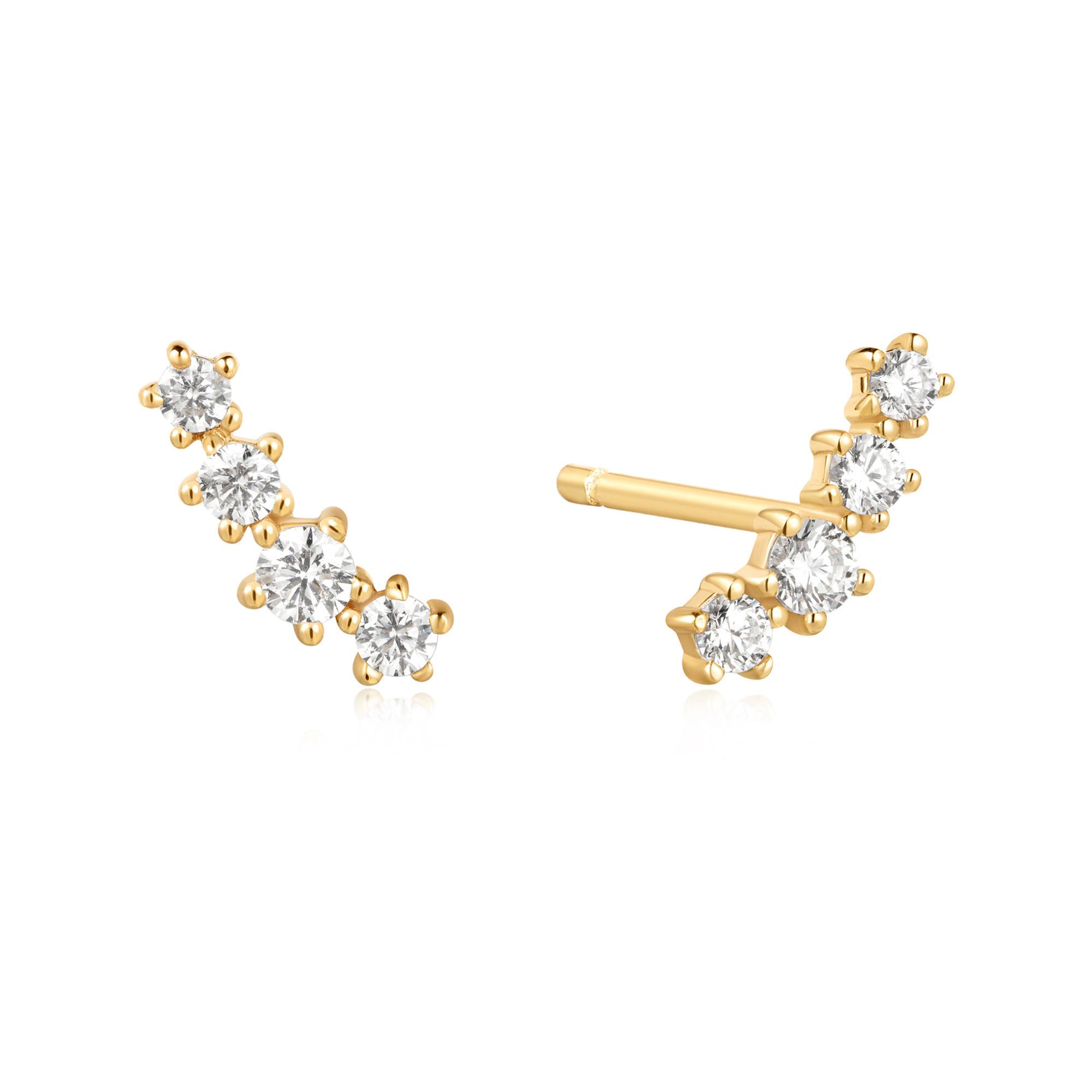 Diese Kletter-Ohrstecker in Gold sind aus 925 Sterling Silber gefertigt und mit 14kt Cubic Zirkonia besetzt. Ihr funkelndes Design, inspiriert von Sternschnuppen, verleiht jedem Outfit eine elegante Note.