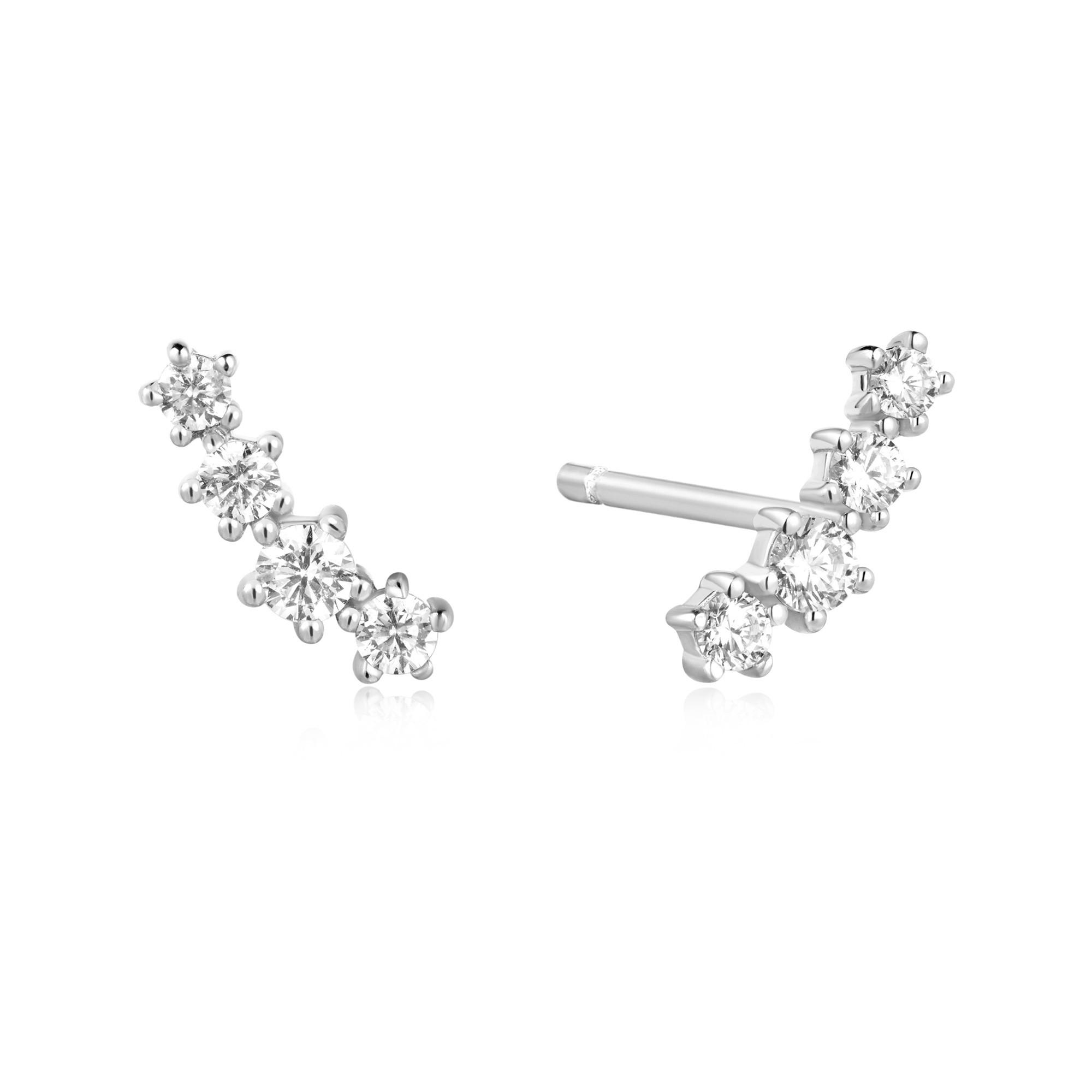 Diese Silber-Ohrstecker in Kletterform sind aus rhodiniertem 925 Sterling Silber gefertigt und mit Cubic Zirkonia besetzt. Inspiriert von Sternschnuppen strahlen sie Eleganz aus und heben jedes Outfit mit ihrem schimmernden, himmlischen Motiv hervor.