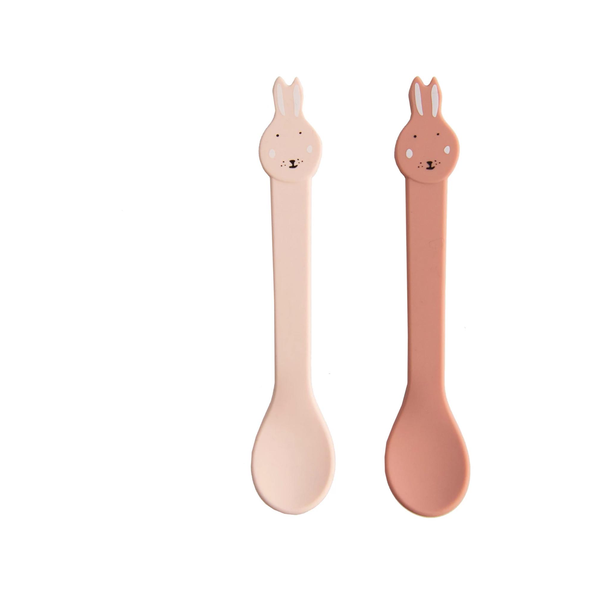 Zwei bunte Löffel mit einem freundlichen Gesicht, um Ihre Mahlzeit zu geniessen! Dieser Löffel ist ideal dafür geeignet, Ihr Kind mit fester Nahrung zu füttern. Die Löffel eignen sich auch hervorragend für Kinder, die lernen, selbstständig zu essen. Im Inneren des Löffels ist ein Teil aus rostfreiem Stahl integriert, um ihn stabil und gerade zu halten. Daher ist dieser Artikel eine Ausnahme und darf nicht in der Mikrowelle verwendet werden.