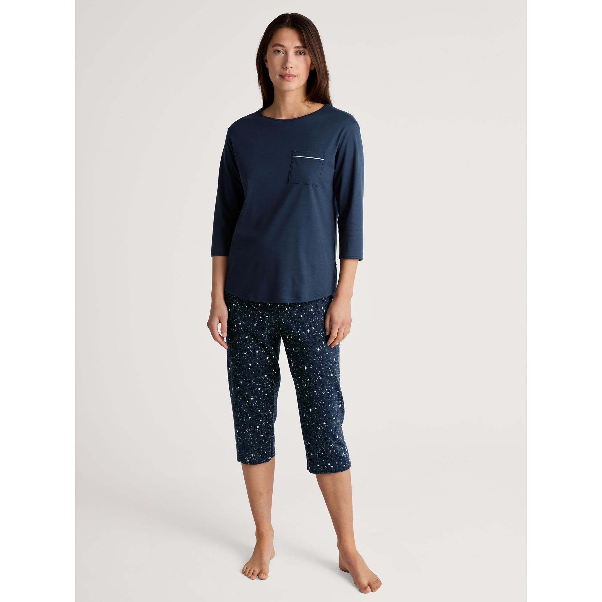 Dieses Pyjama-Set bietet Komfort und Stil für entspannte Stunden zu Hause. Das Oberteil verfügt über einen klassischen Rundhalsausschnitt und eine praktische Brusttasche, während die verkürzten Hosen mit einem charmanten Blumenmuster verziert sind. Dieses Nachthemd von Calida ist aus 100% Baumwolle gefertigt und überzeugt durch hautfreundliche sowie atmungsaktive Eigenschaften, hohen Tragekomfort, natürliche Temperaturregulierung und langlebige Qualität.