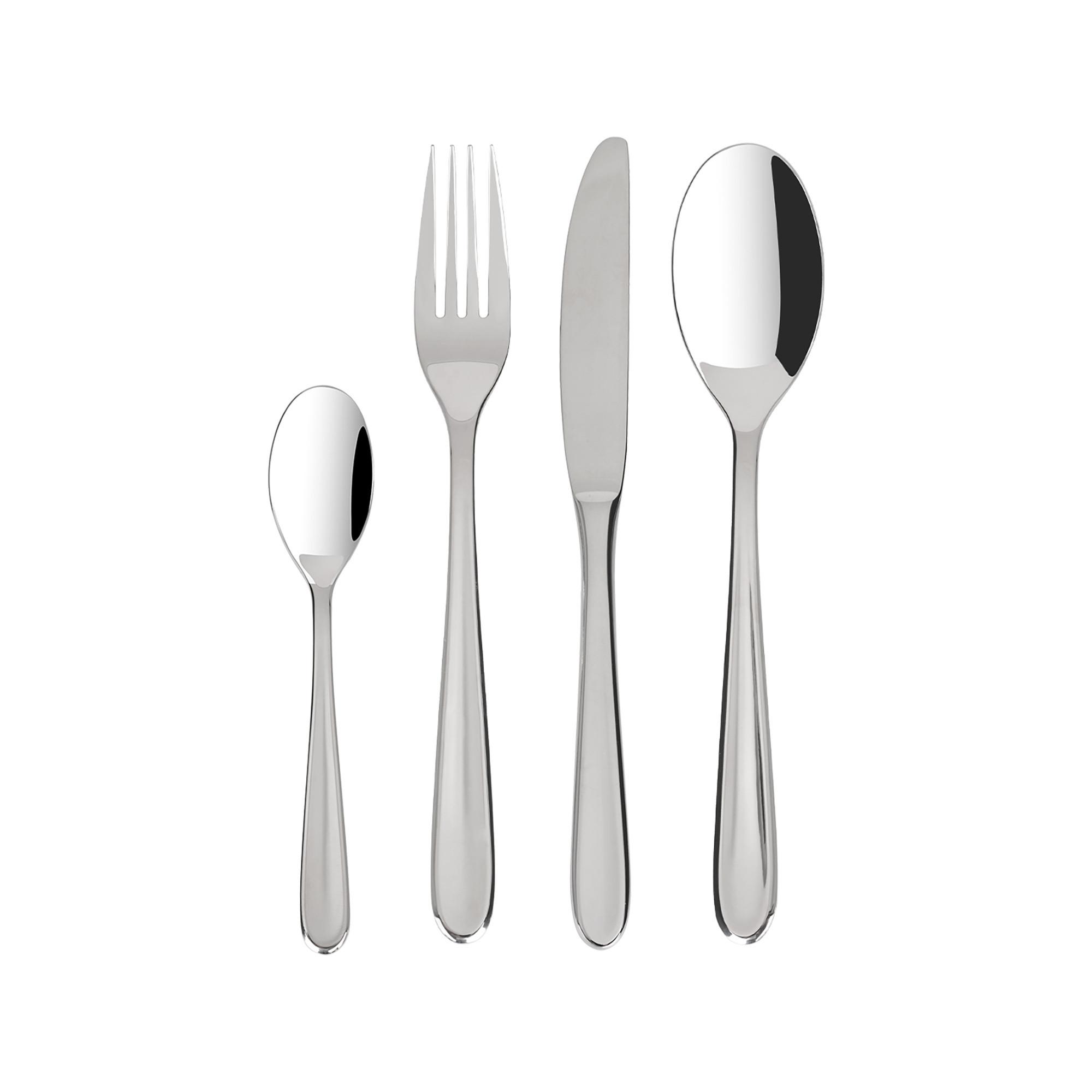 Verschönern Sie Ihr Tischgedeck mit den feinen Linien des Bestecksets Gina. Sie werden es für sein zeitloses Design und dem polierten Griff lieben, der sowohl alltägliche Abendessen als auch besondere Momente bei Ihren Familienfeiern bereichert.