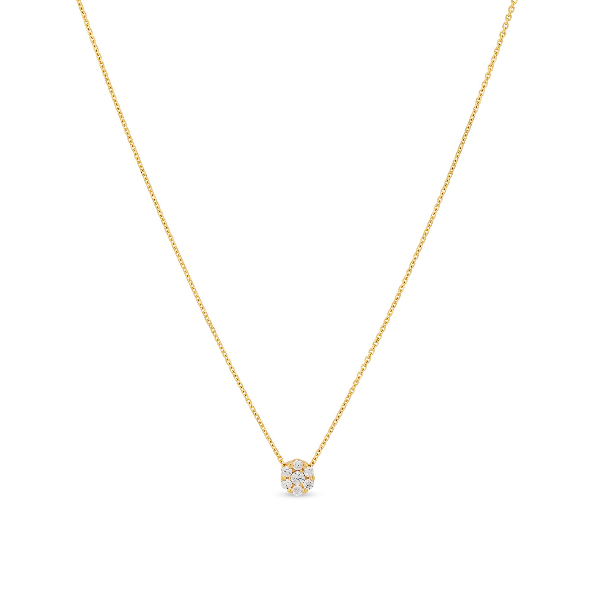 Dieses zarte Collier von L'Atelier Gold 18 Karat by Manor ist aus reinem Gelbgold hergestellt, mit einem Anhänger aus facettiert geschliffenem, lichtdurchlässig gefasstem Zirkonia. Der elegante Schmuck hat einen Federring-Verschluss.