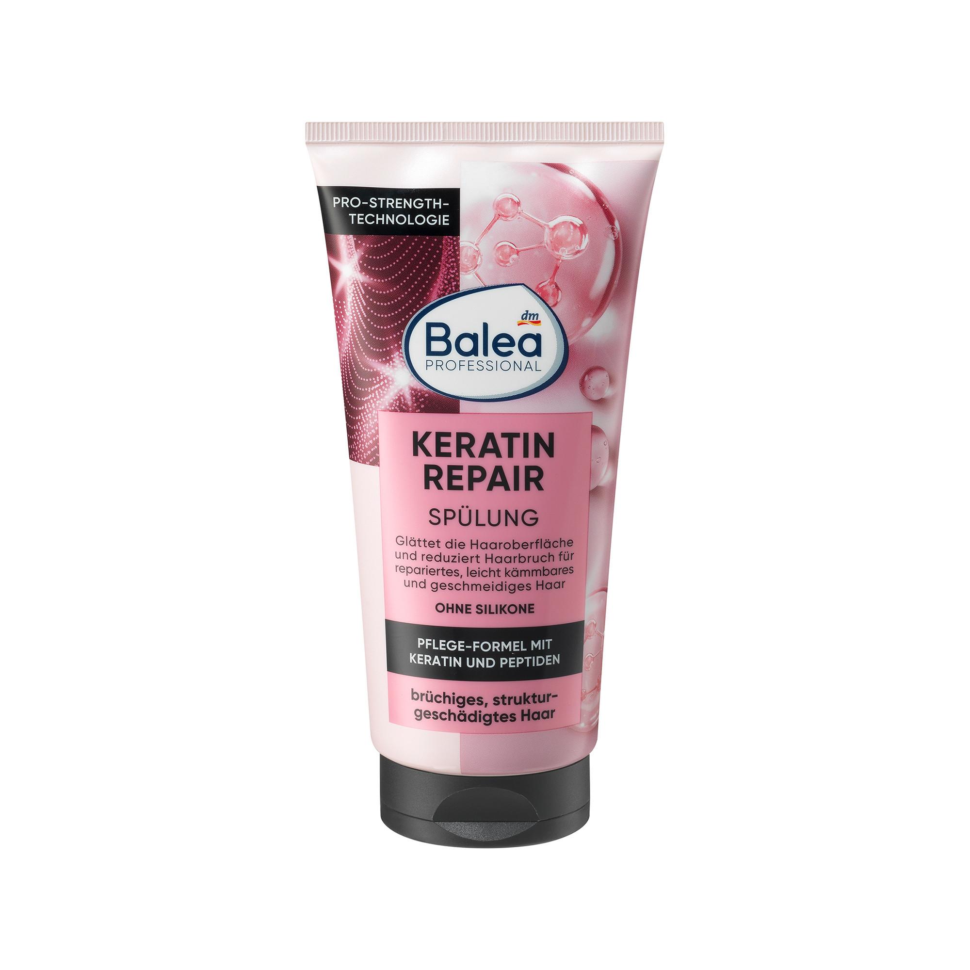 Die Balea Professional Spülung Keratin Repair füllt brüchige Stellen auf und glättet die Haaroberfläche. Sie stärkt die geschwächte Haarstruktur, reduziert Haarbruch, sorgt für optimale Kämmbarkeit und weniger Frizz. Haarbausteine wie Keratin lagern sich in der Haarstruktur ein, helfen die Haarfasern zu stärken und sorgen für eine verbesserte Haarqualität. Für natürlichen Glanz und seidige Geschmeidigkeit.